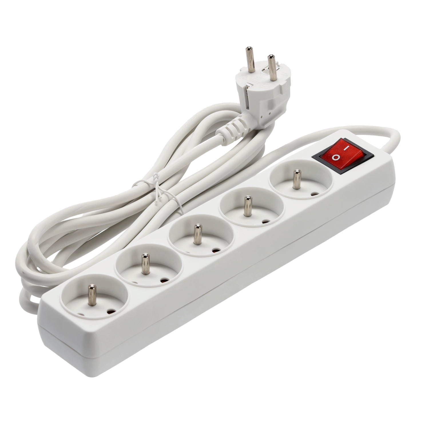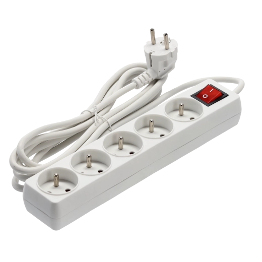 Practical extension strip with 5 outlets, a 3 m copper cable, and a illuminated main switch for safe, convenient power to multiple devices at once. Durable design, grounded Schuko sockets, and a reliable 3×1.0 mm² copper conductor ensure stable performance at home and in the office.