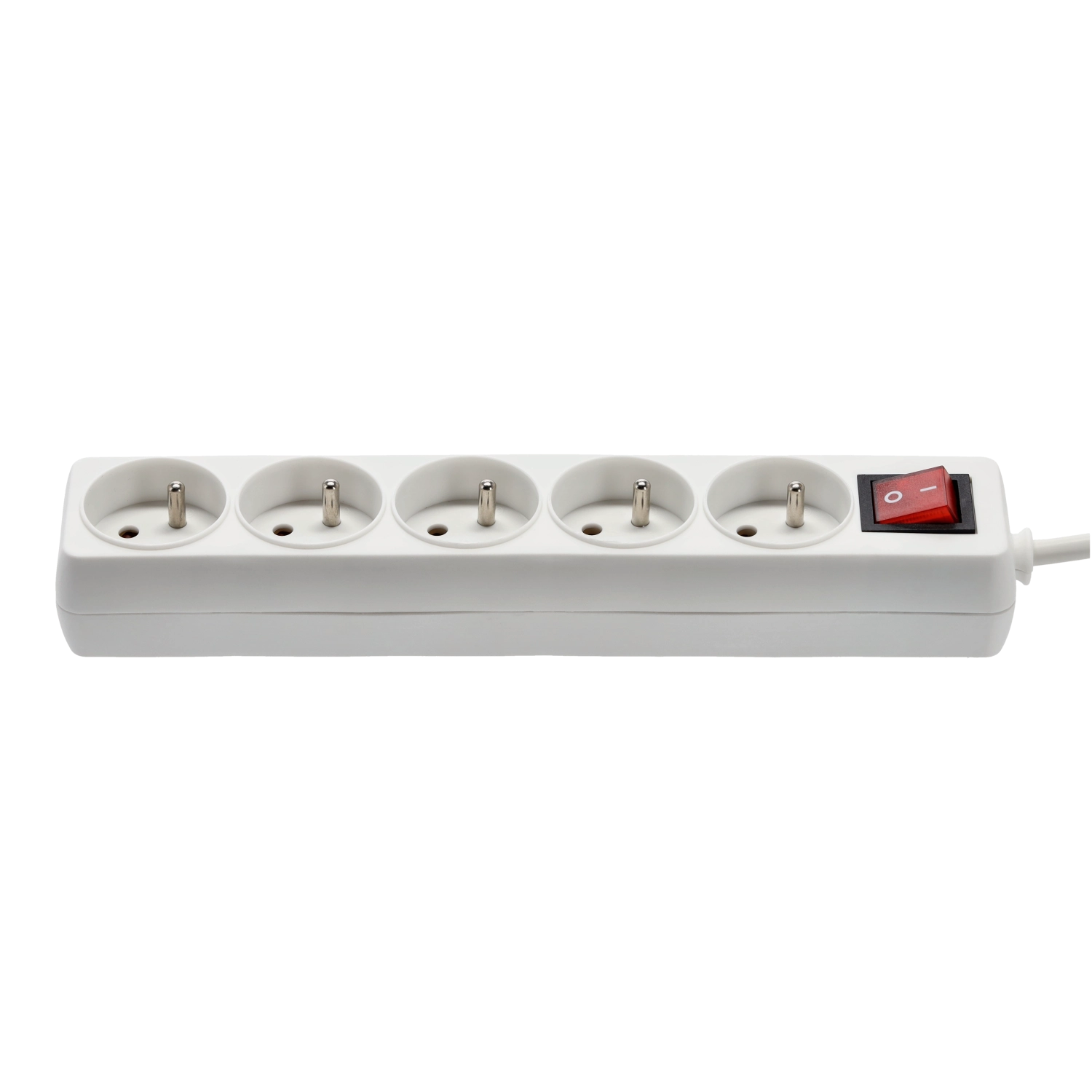 Surge-protected extension strip with switch, 5 outlets, 3 m, white