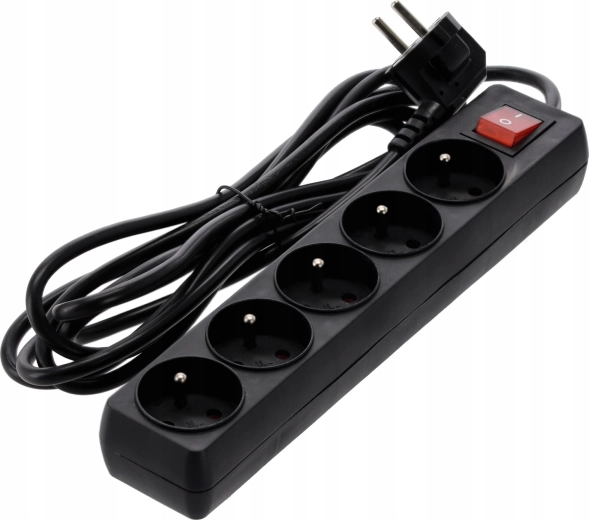 Looking for a reliable power strip for your home, workshop, or office? This black extension strip offers 5 grounded Schuko sockets, an illuminated switch for quick disconnection of all appliances, and a 3 m copper cable 3×1.0 mm² for flexible placement.