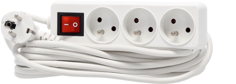 This white extension strip with three outlets is ideal for powering multiple devices from a single wall socket. Thanks to the illuminated main switch, you can cut power to all connected devices at once to reduce standby consumption.