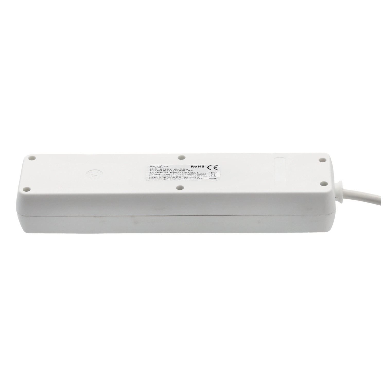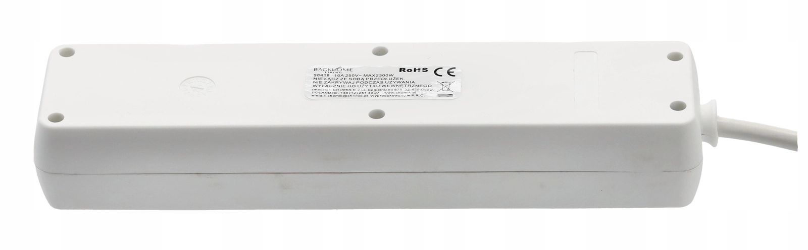 This white power strip provides four grounded sockets for powering multiple devices simultaneously. Thanks to the long 5-meter cable, you can easily reach where wall outlets are not at hand, and the backlit switch lets you quickly disconnect all appliances at once.