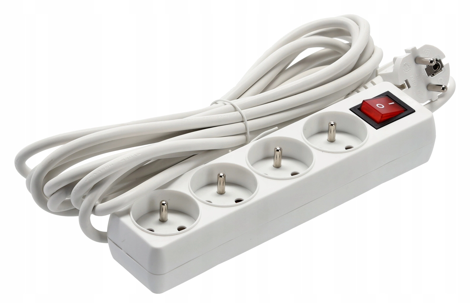Reliable power strip with 4 Schuko sockets, a backlit main switch, and a 5 m copper cable 3×1.0 mm². Ideal for home and office—provides safe power for multiple devices at once and convenient one-button control.