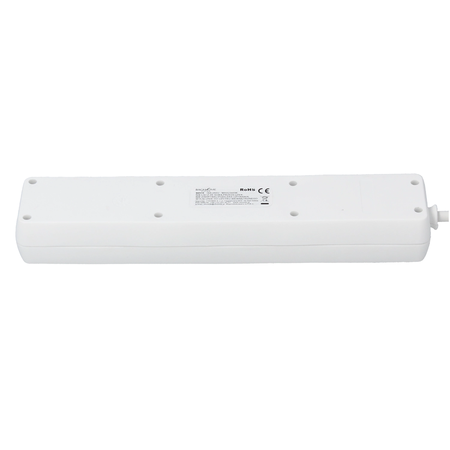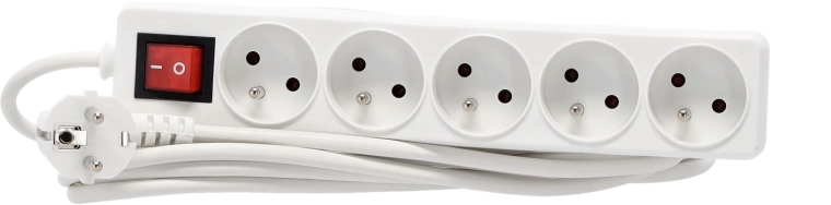 This white power strip is ideal for the home, office, and workshop. It offers 5 Schuko sockets, a robust design made of durable plastic, and a master switch that disconnects all connected devices with one press. The copper conductor 3×1.0 mm² ensures reliable current transfer and long service life.