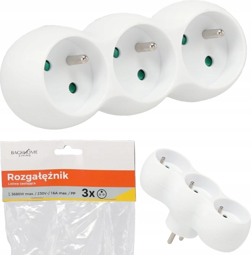Looking for a reliable, simple solution to power multiple devices at once? This white splitter with three sockets provides safe and convenient operation for TVs, computers, chargers, and small appliances. The maximum load of 3680 W at 230 V ensures ample power headroom.