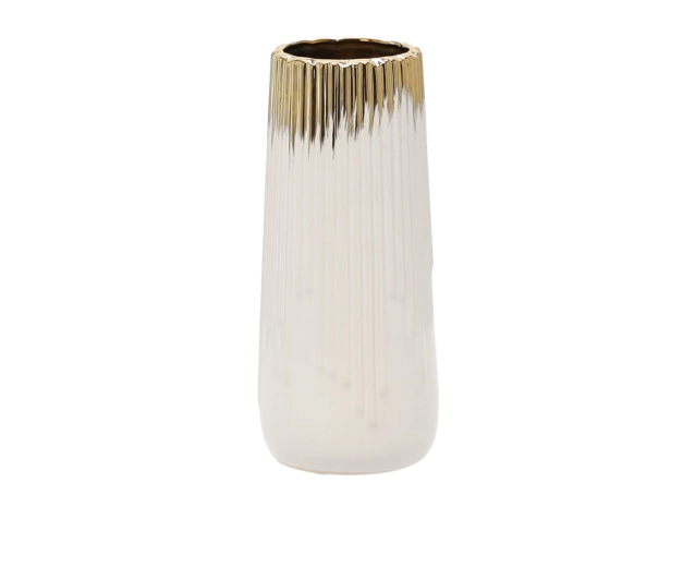 This gold-and-white ceramic vase stands out with its clean shape and luxurious metallic accent. It pairs effortlessly with modern, minimalist, and glamour styles, becoming a striking feature on a dining table, shelf, or coffee table. Thanks to its sturdy ceramic construction, it is stable and suitable for fresh flowers as well as decorative branches.