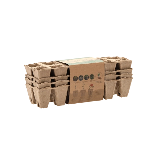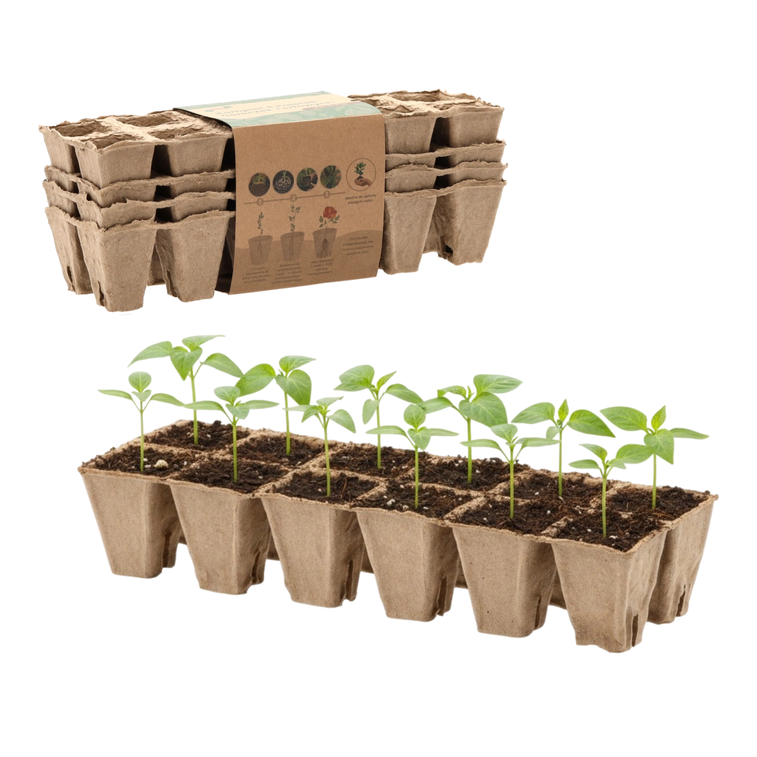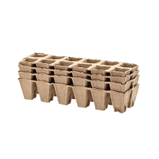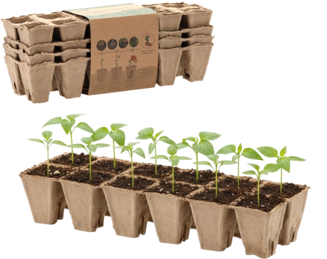 Trays made from pressed paper–peat pulp can be planted directly into the soil. They naturally break down and support the root system without unnecessary waste.