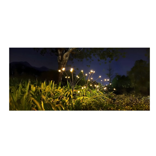 These elegant solar lights shaped like fireflies transform your outdoor space into a magical nook. Each lamp offers 6 warm white light points that look decorative while practically accenting paths or bed edges. The polycrystalline solar panel charges during the day and the lights switch on automatically at dusk.