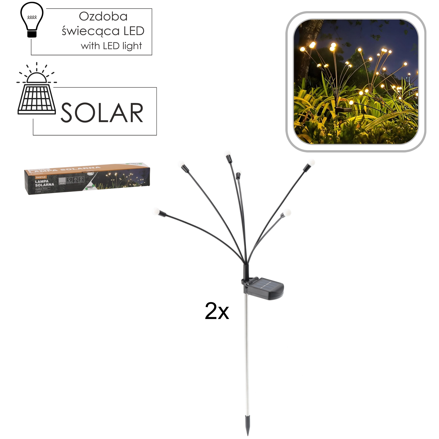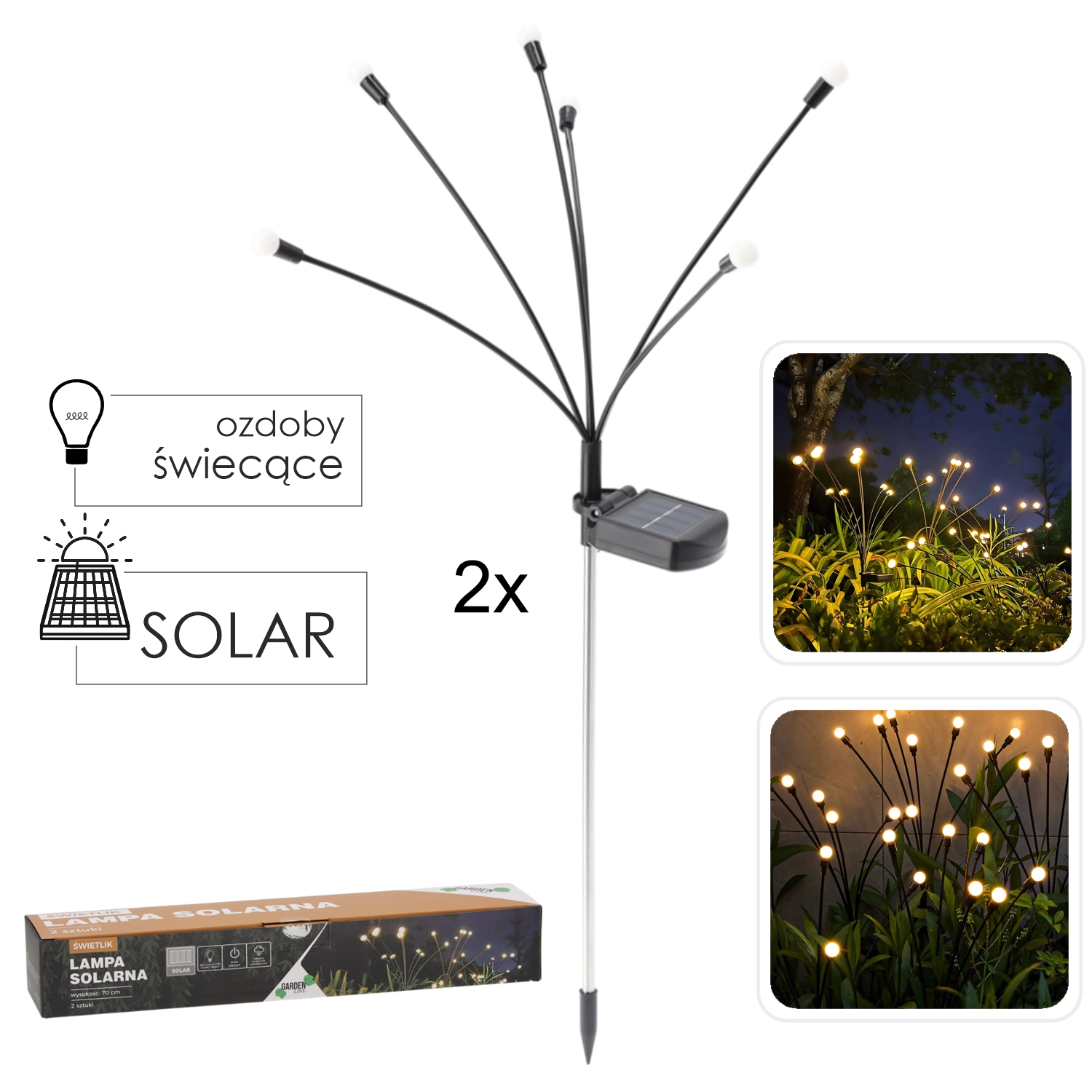 Set of 2 Solar Garden Lights Firefly, 70 cm, Warm White