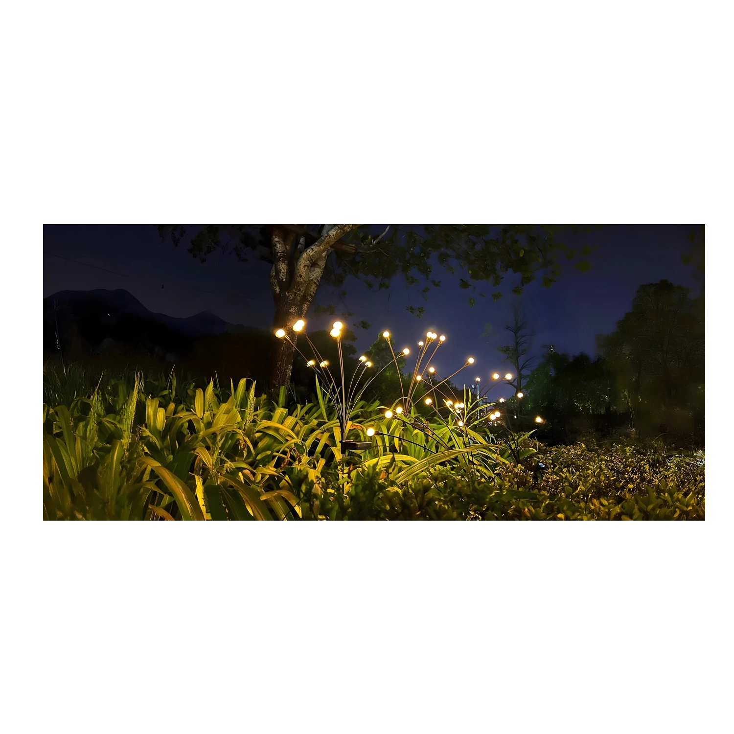 Multi-point LED tips on flexible stems create a soft, decorative light that highlights pathways, beds, and shrubs without glare.