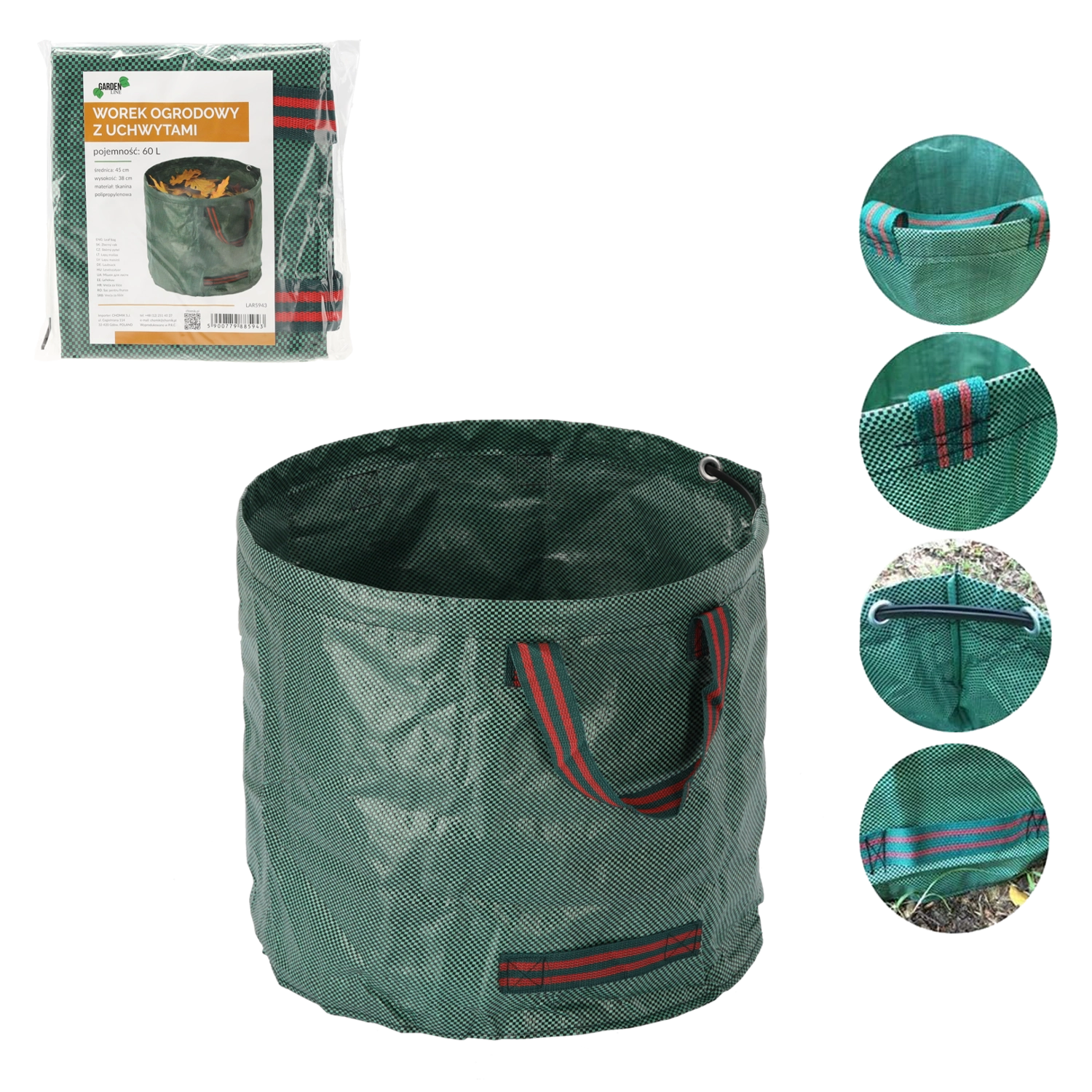 Practical garden bag with a capacity of 60 l for easy collection and carrying of leaves, grass, small branches, and other organic waste. It is made of a durable tear-resistant material, is waterproof and UV resistant, and thanks to four handles offers convenient carrying and emptying. Reusable and an ideal helper for any garden clean-up.