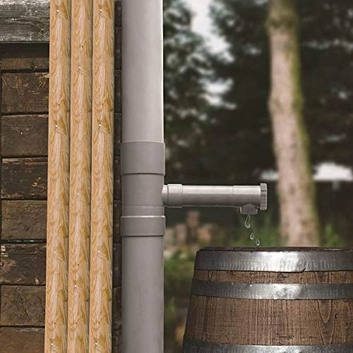 The integrated branch piece directs part of the flow into the barrel while the rest safely continues down the pipe. Ideal for garden irrigation without waste.