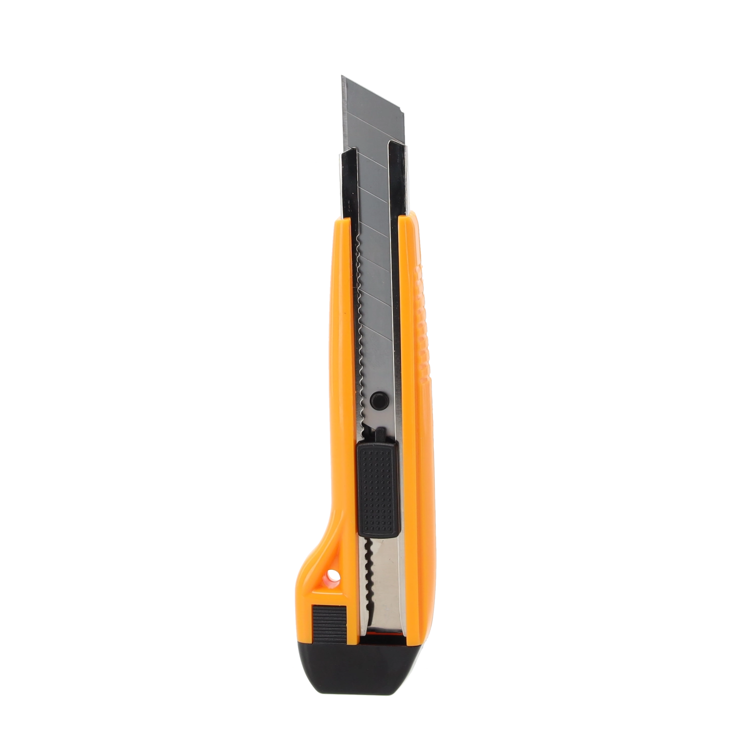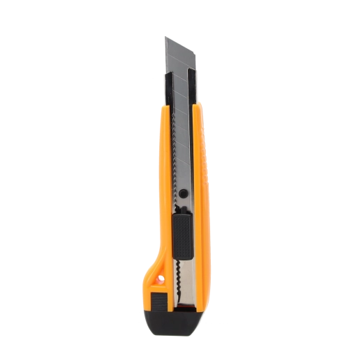 This 18 mm snap-off knife is ideal for the workshop, home, and office. The robust ABS body in yellow ensures durability and good tool visibility. The automatic blade lock increases safety and convenience when cutting cardboard, films, carpets, and other materials.