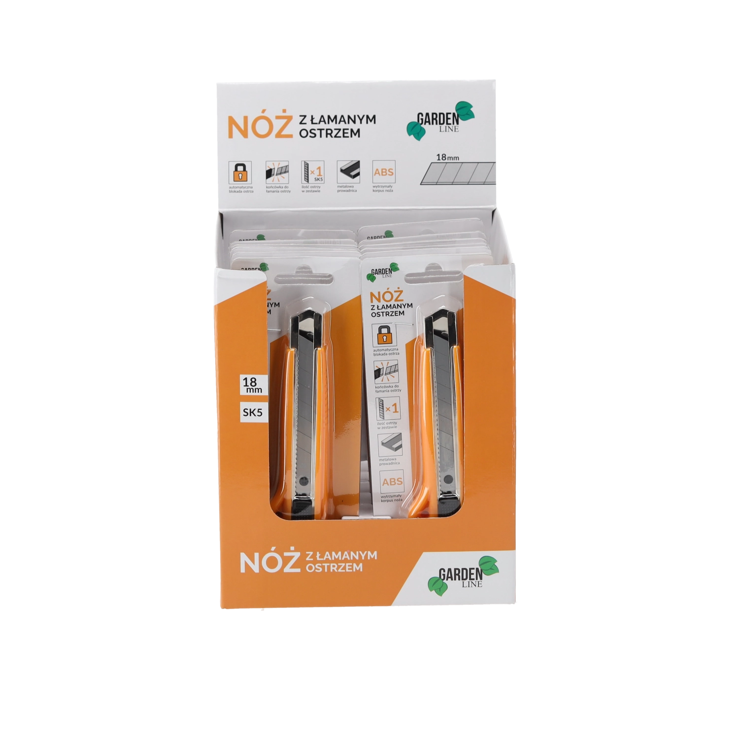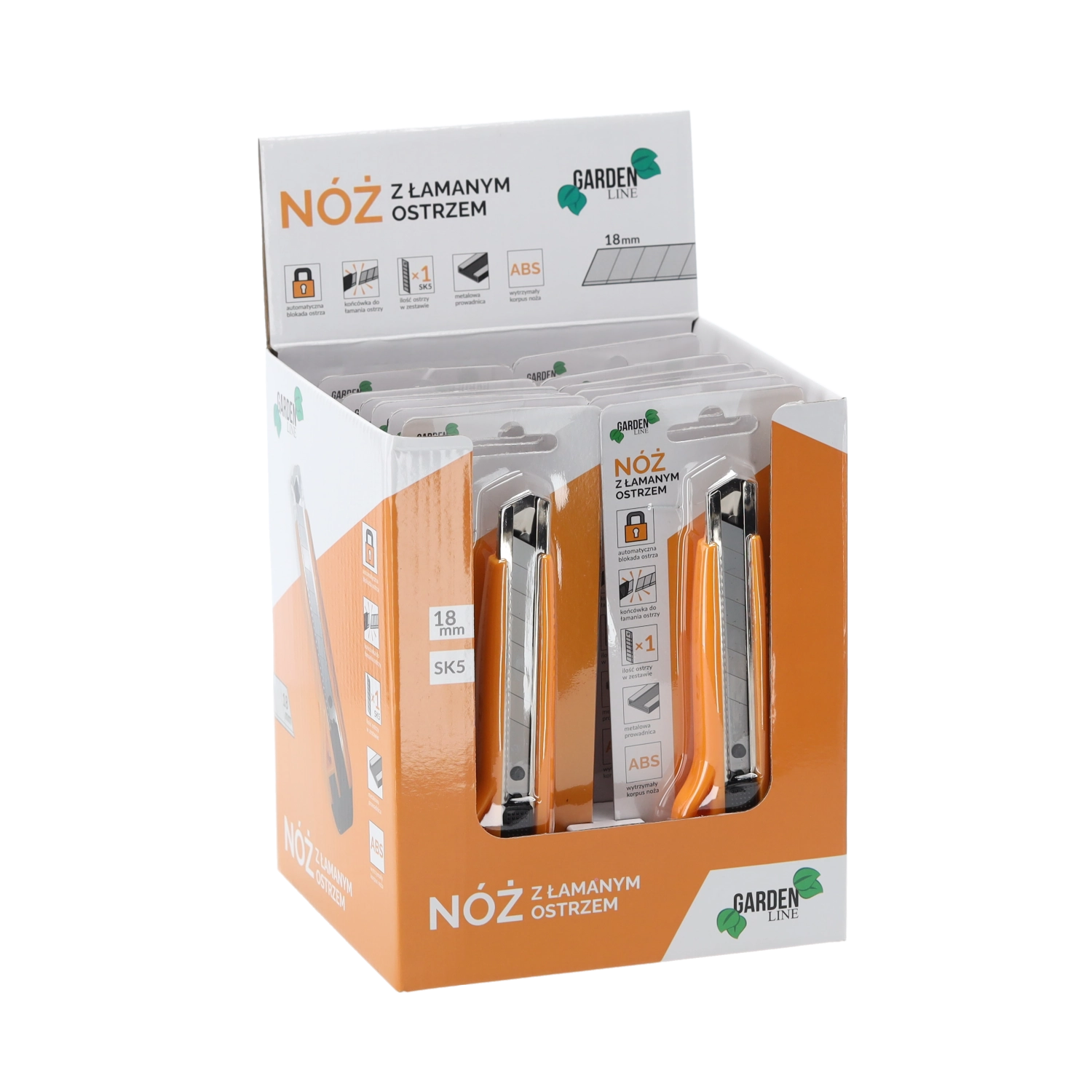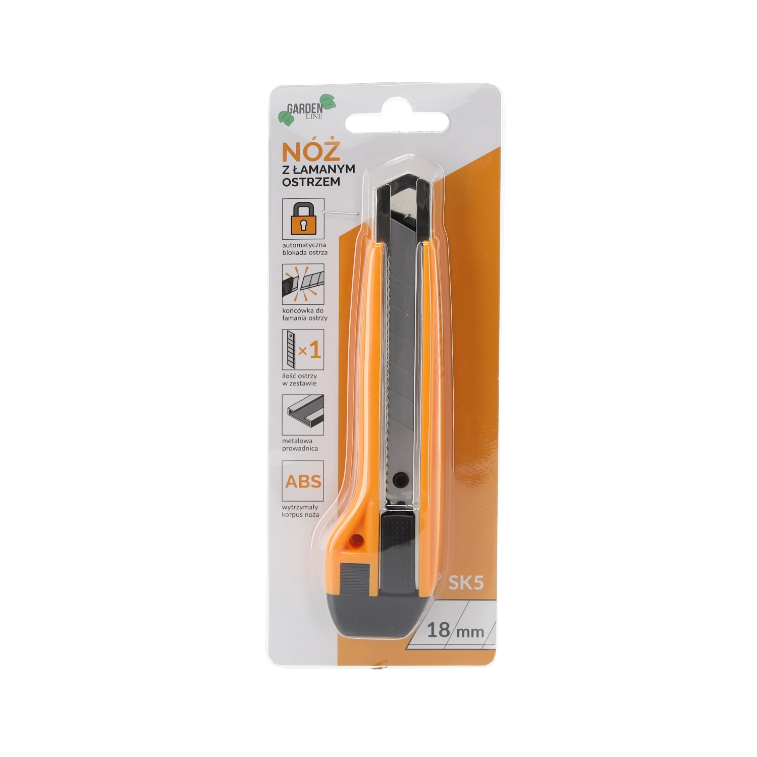 Practical and durable snap-off knife with an 18 mm blade width for precise and safe cutting. Thanks to the ABS body and automatic blade lock, it offers reliability at work. Includes a quality SK5 steel blade pre-installed from the factory.