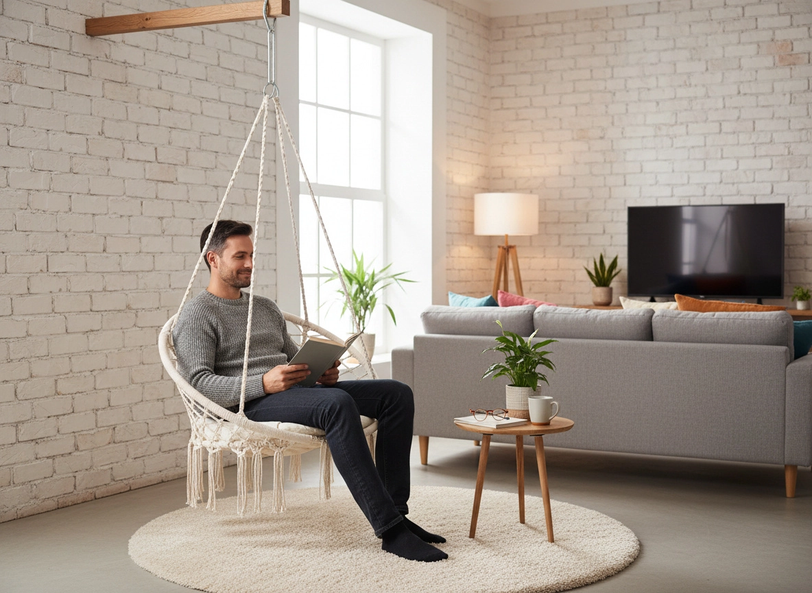 Enjoy peaceful moments at home or outdoors with a stylish hanging chair featuring a soft cushion. It offers exceptional comfort, a sturdy load capacity up to 200 kg, and an elegant beige finish that fits perfectly on a balcony, terrace, or in the living room.