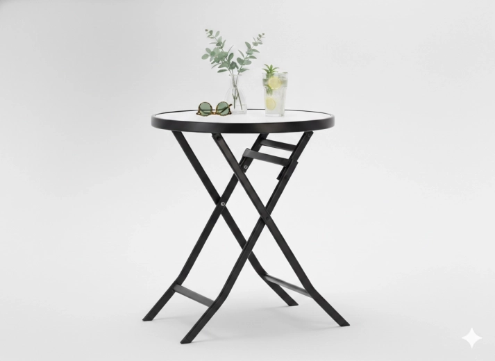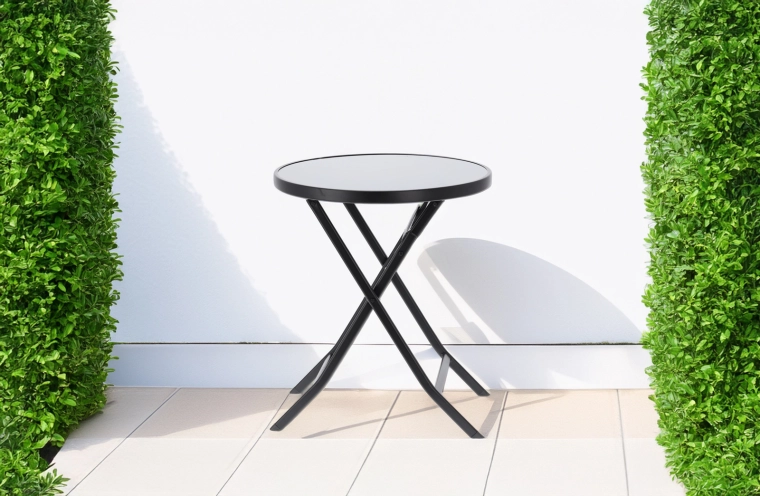 Crossed legs and a folding mechanism allow quick folding and compact storage or transport—great for balconies and small patios.