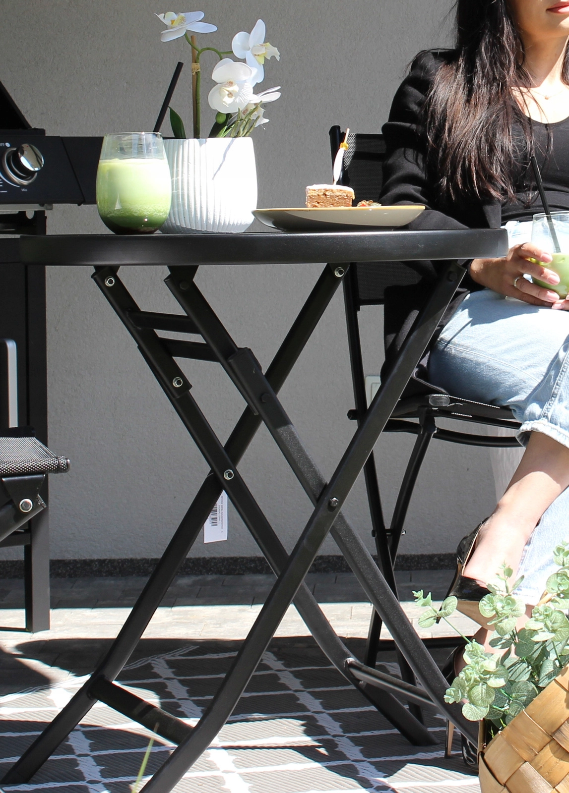Thanks to its folding design, you can fold and store the table quickly—saving space on the balcony or in the storage room. Use it as a side table by your seating area, a small bistro table for the patio, or a practical helper for garden parties.