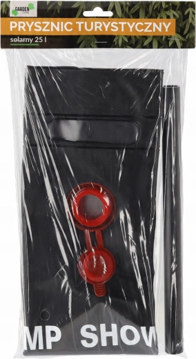 The 25-liter volume is enough for several showers. A long hose with a shower head makes rinsing and adjusting the water flow easy.
