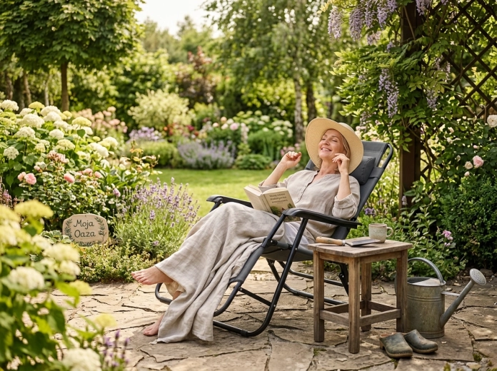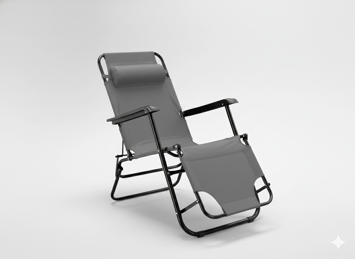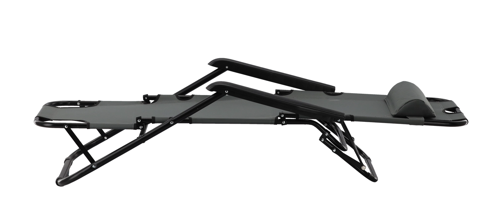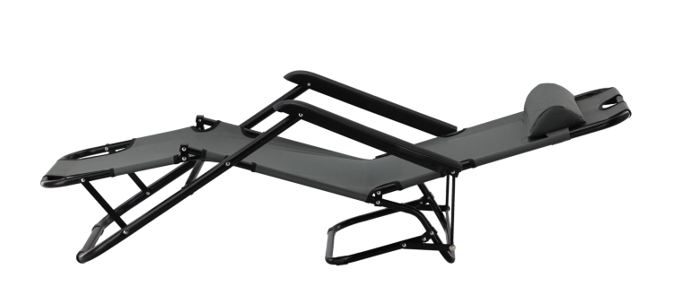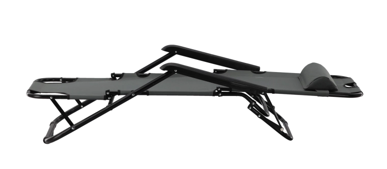 Thanks to the folding construction, the lounger is easy to carry and store. The adjustable headrest supports the cervical spine, and the ability to recline fully flat turns it into a practical camp bed—perfect for the garden, poolside, cottage stays, and camping.