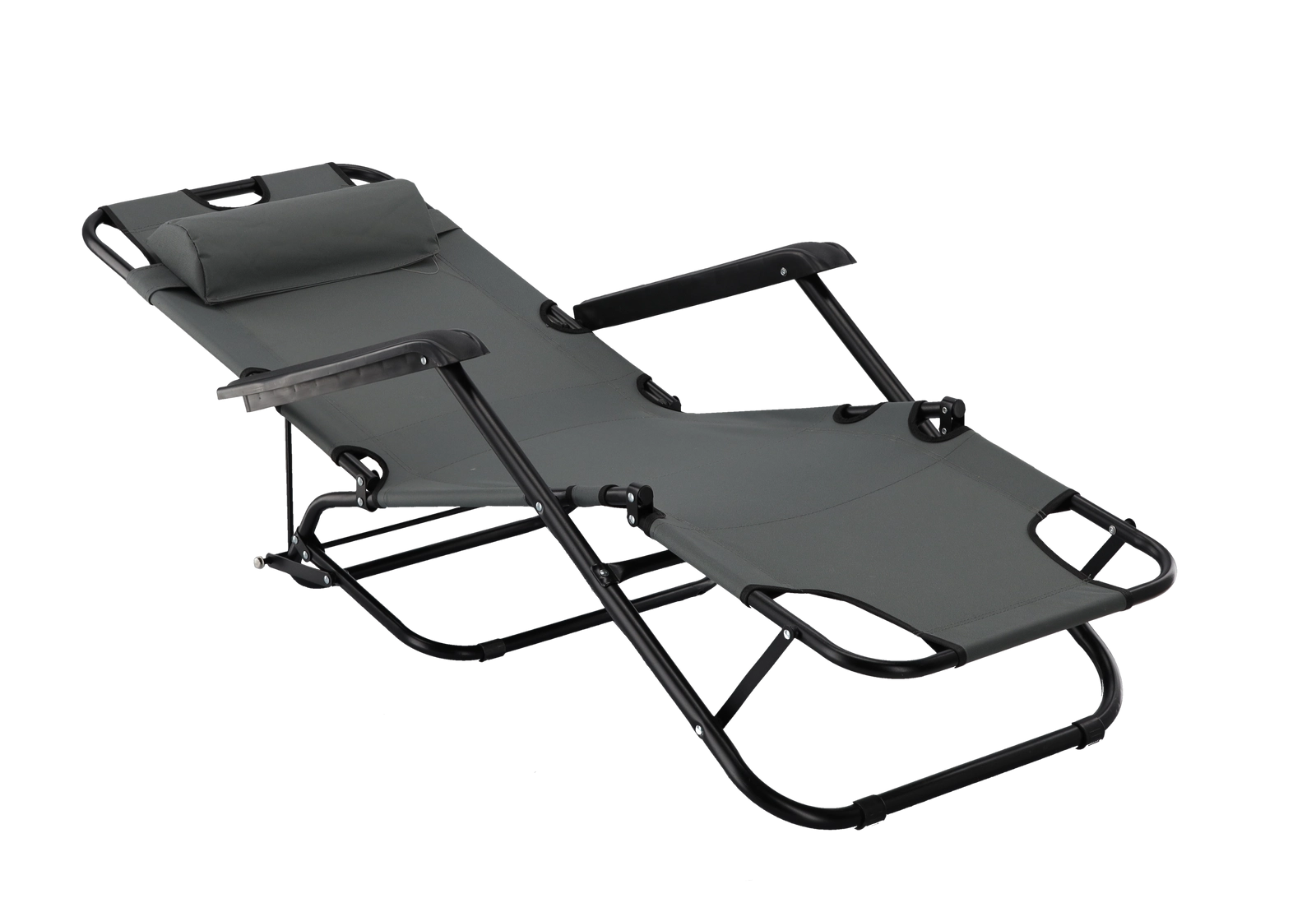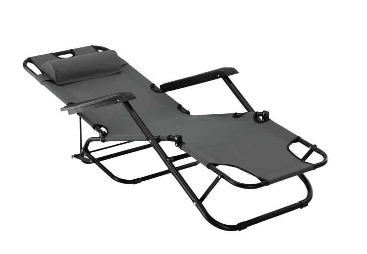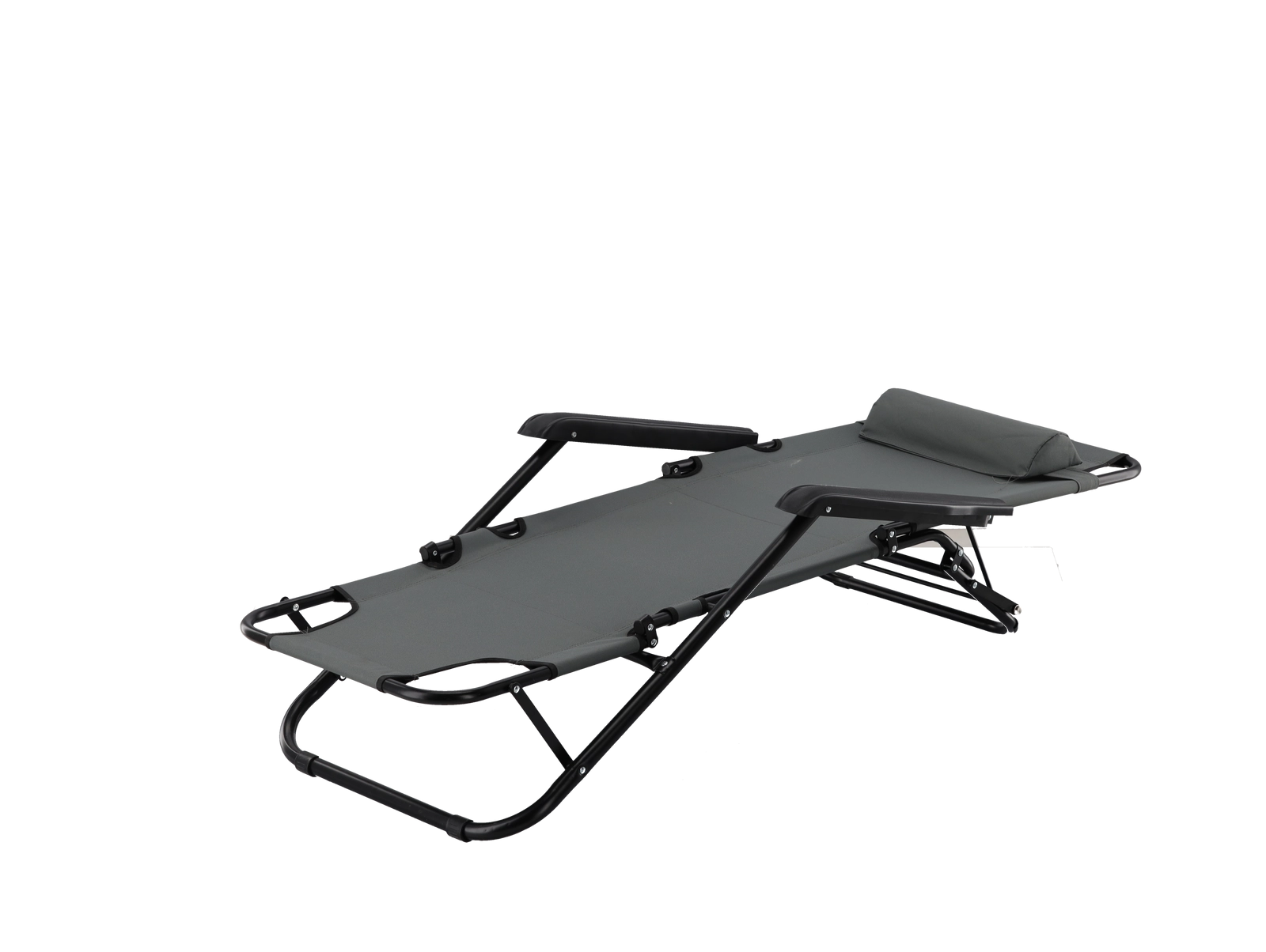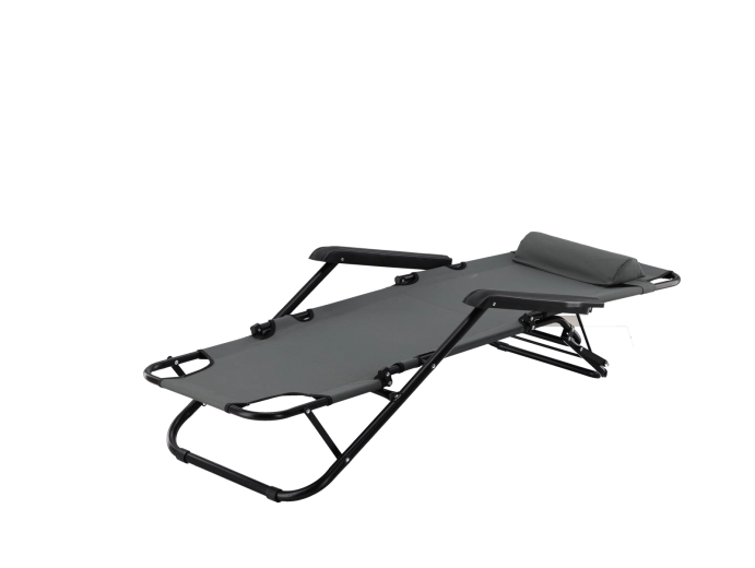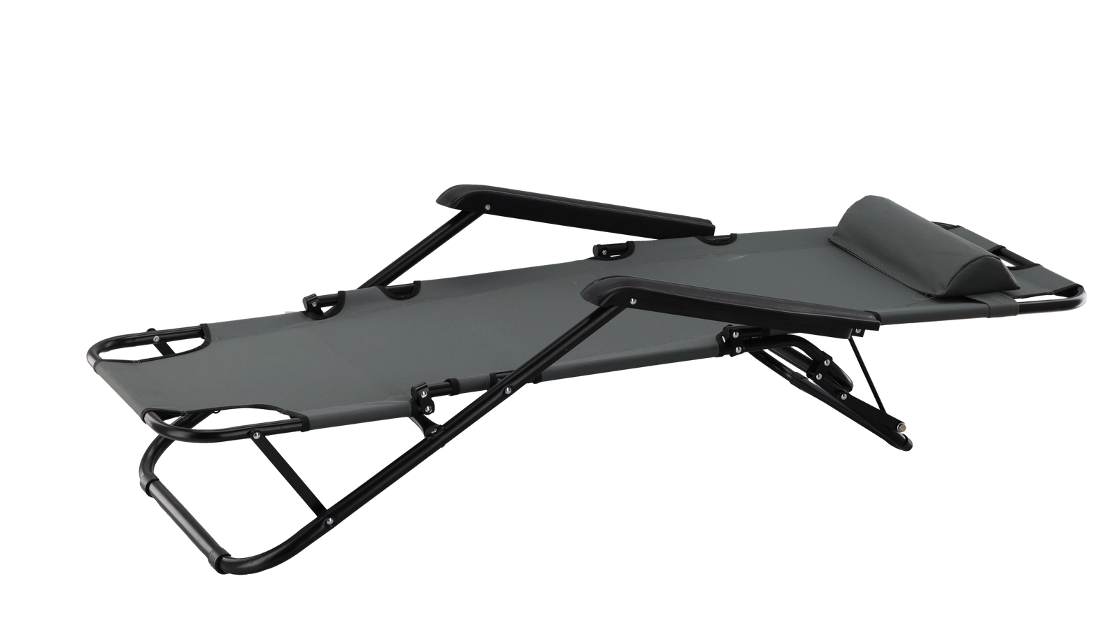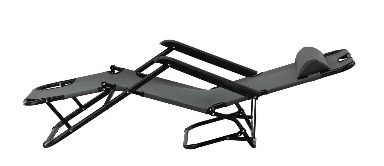 This practical garden lounger in elegant grey combines style and functionality for everyday relaxation. A robust powder-coated metal frame ensures stability, while the breathable, flexible fabric conforms to your body to provide comfort whether sunbathing or resting in the shade.