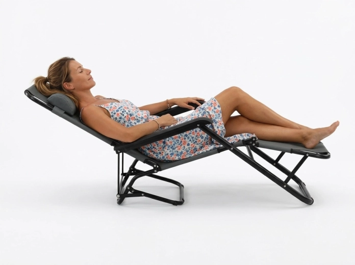 The lounger can be laid completely flat for a quick nap or rest after swimming or hiking.