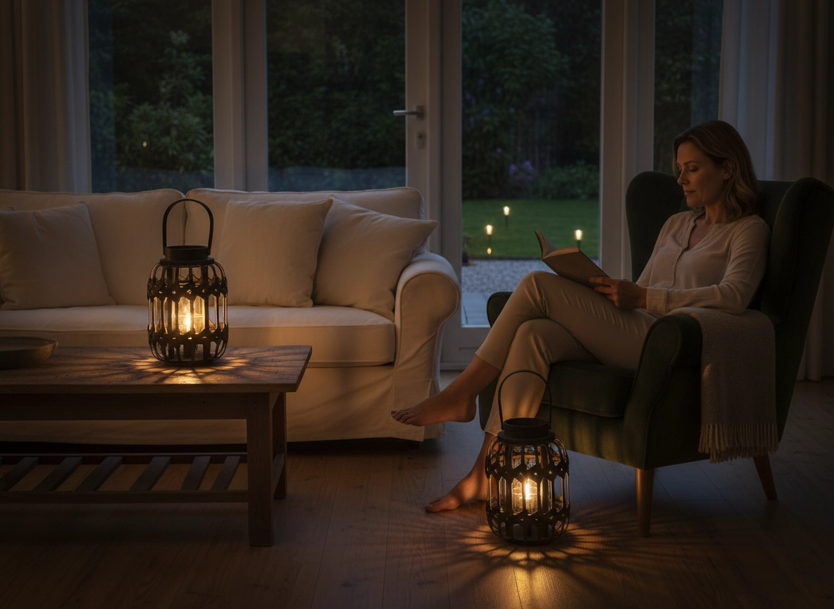 The open mesh construction creates decorative light effects, and the sturdy top handle allows you to carry or hang the lantern with ease. Perfect for a table, sideboard, terrace, balcony, or steps — anywhere you want to create a cozy lighting atmosphere.