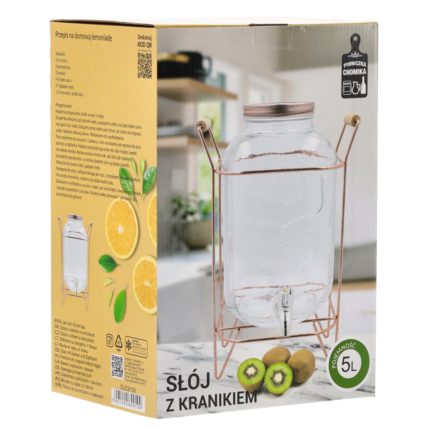 With its timeless, slightly rustic look, it fits Scandinavian, loft, and boho interiors, and works equally well for garden parties, family celebrations, and in food service. It’s perfect for infused water with fruit and herbs, homemade lemonades, iced teas, or punches.