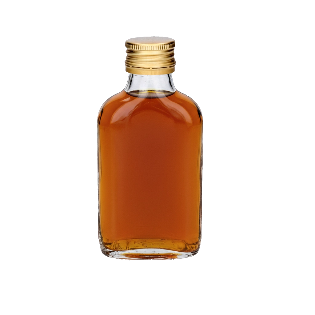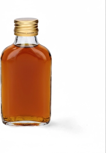 An elegant 100 ml glass hip flask ideal for liqueurs, spirits, wines, and juices. Durable thick glass and a tight 28 mm gold screw cap keep your drink securely sealed, while the clear design makes it easy to check the contents. Perfect for homemade creations, gift packaging, and decoration.