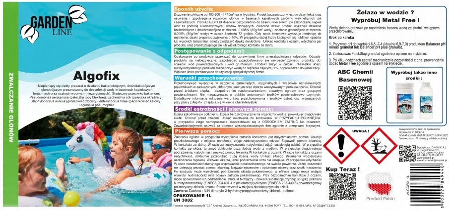 Keep the water in your pool perfectly clean and hygienic with ALGOFIX. Its advanced formula ensures reliable disinfection and prevents algae growth without unwanted foaming. Suitable for indoor and outdoor pools as well as fountains and fish-free ponds.