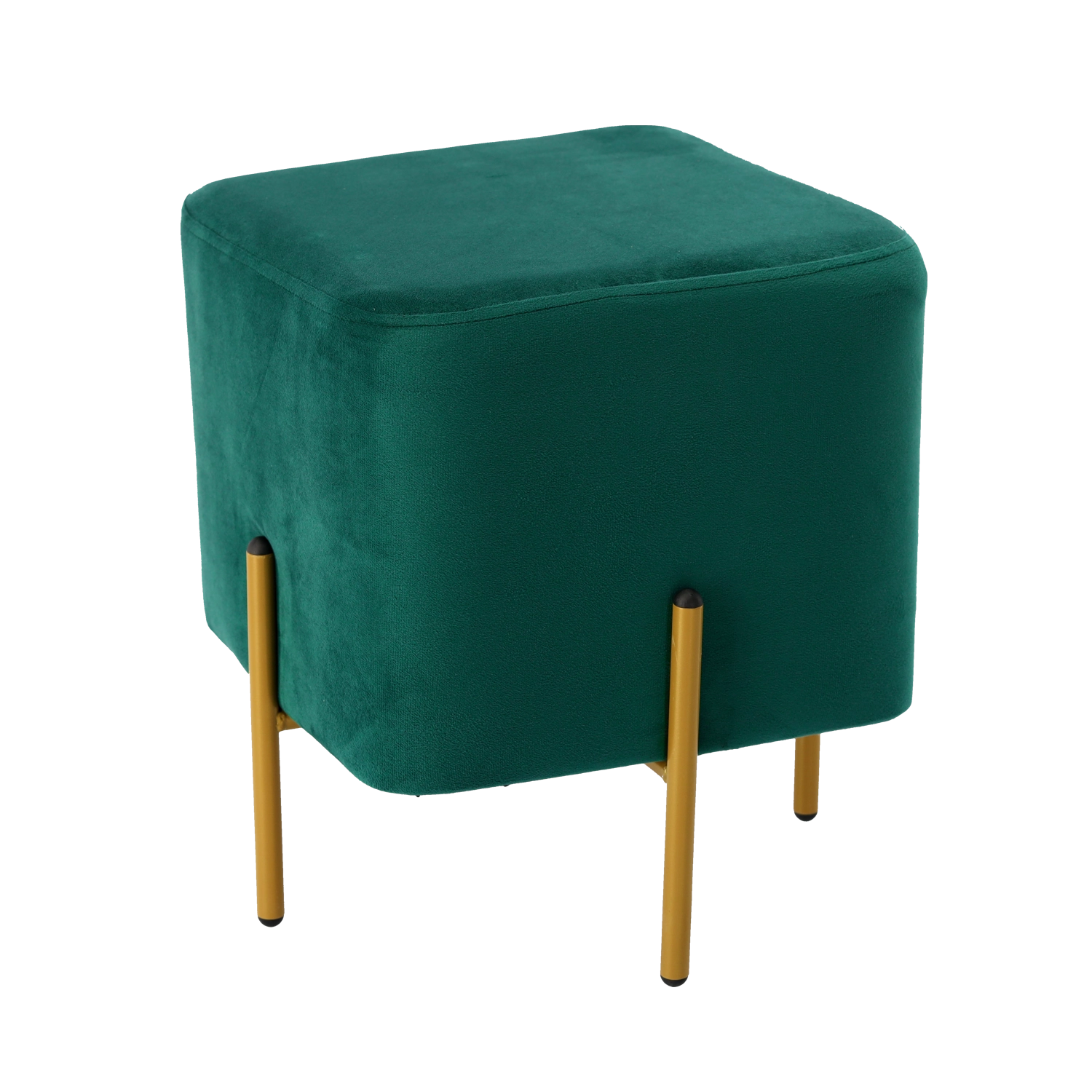 Bring a touch of luxury to your home. This dark green velvet ottoman on slender gold-finished metal legs combines an elegant look with practical functionality. Soft padding with high-density foam ensures seating comfort, while the durable construction guarantees a long lifespan.