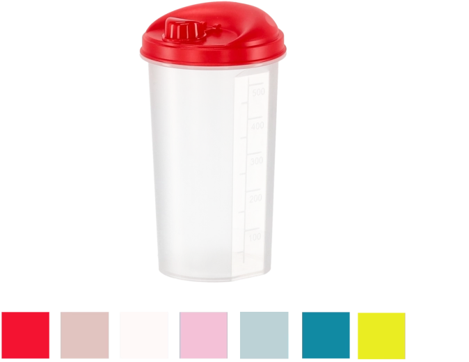 Practical 500 ml oil and vinegar container with an integrated measuring cup for precise dispensing. Made from BPA-free safe plastic, it is dishwasher safe and thanks to its ergonomic design it’s comfortable to use and store. Available in various colors (shipped at random), adding a stylish touch to your kitchen.