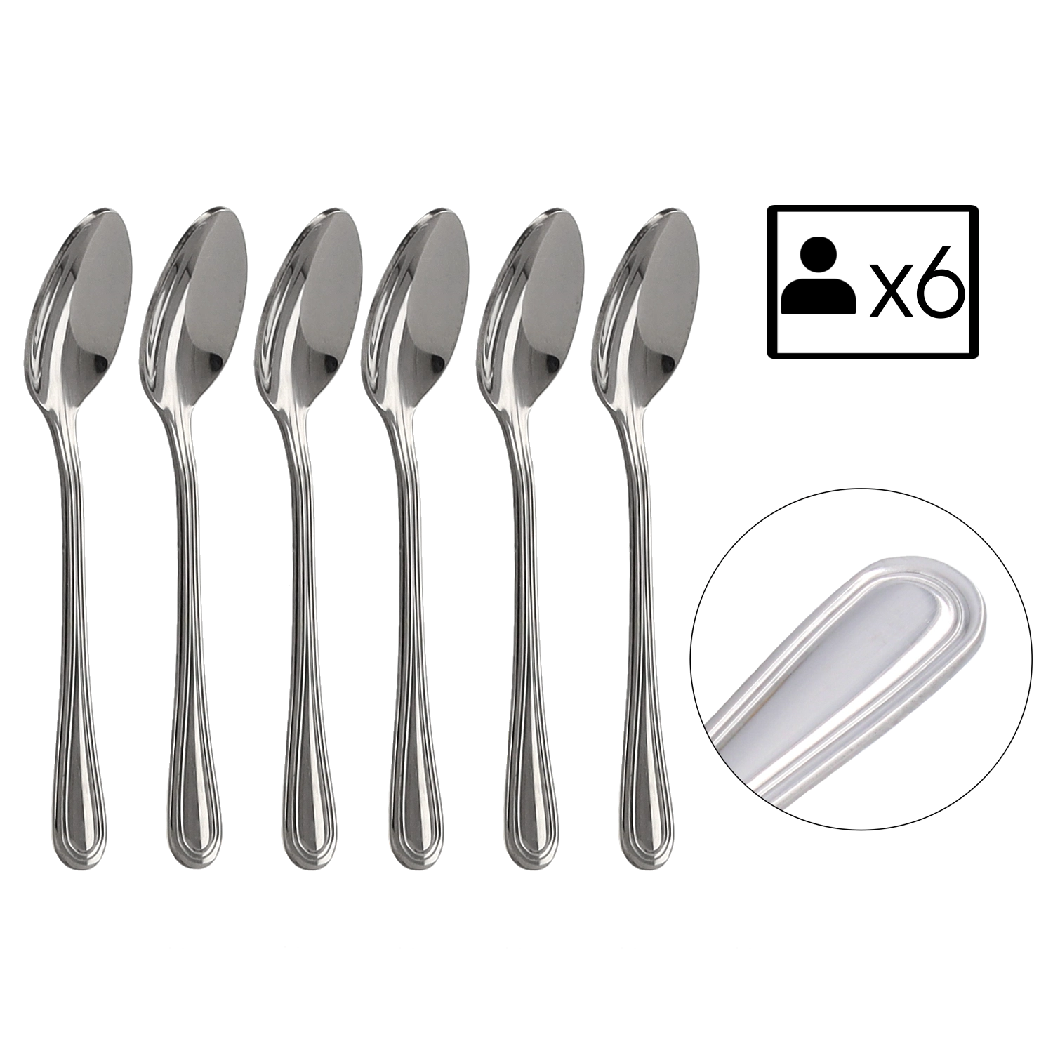 The London mocha spoon set combines a classic look with the durability of stainless steel, making it perfect for everyday use as well as special occasions. The fine perimeter line adds understated elegance, and it pairs easily with both modern and traditional tableware.