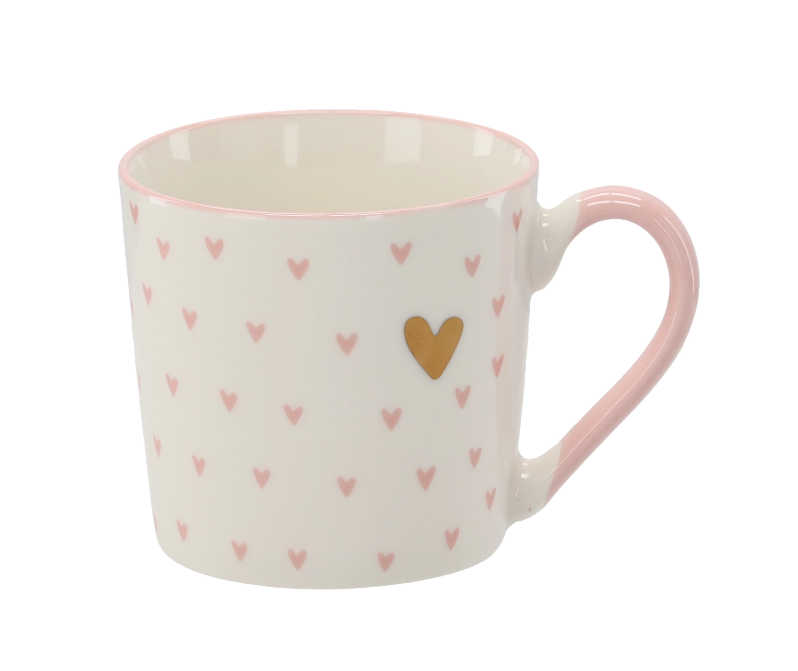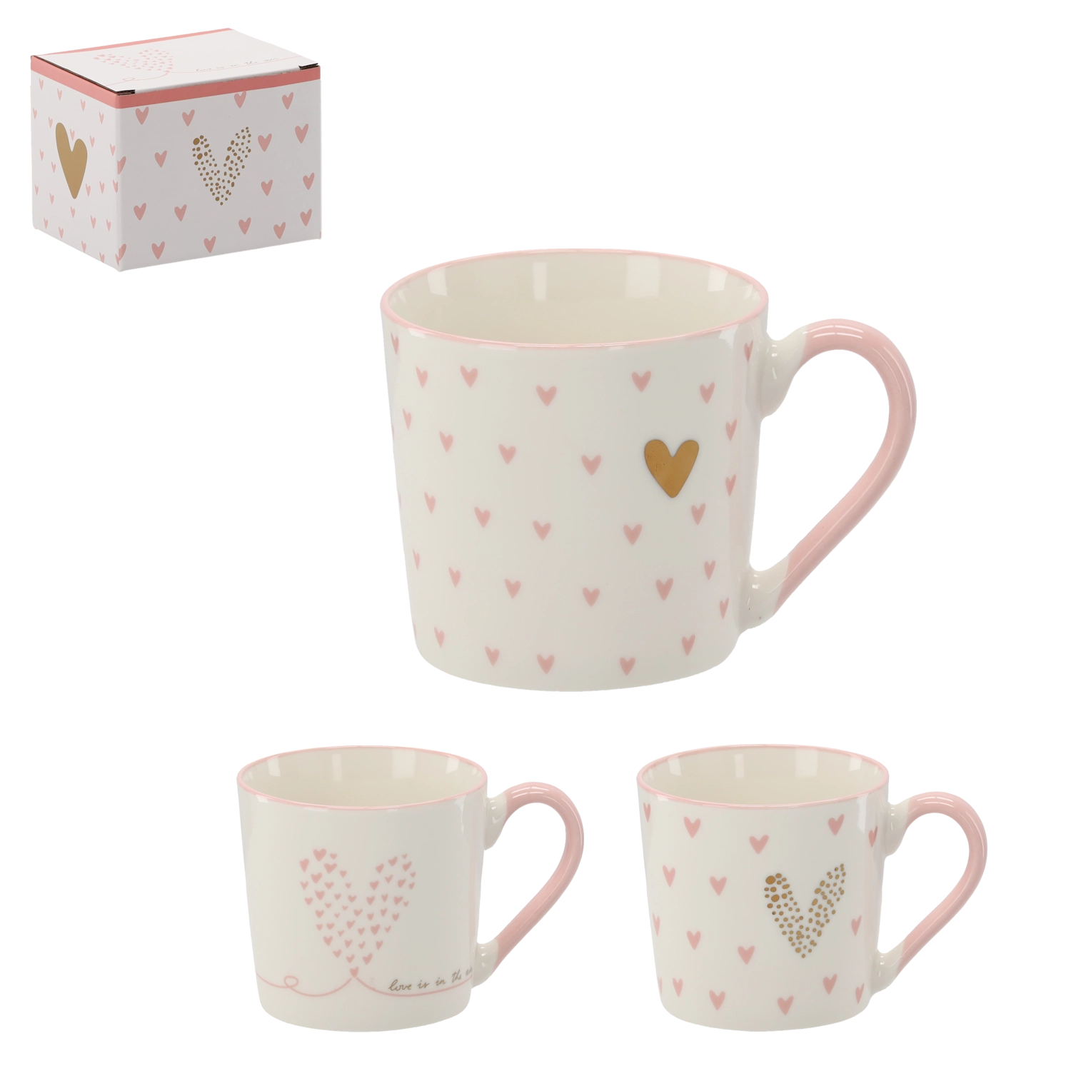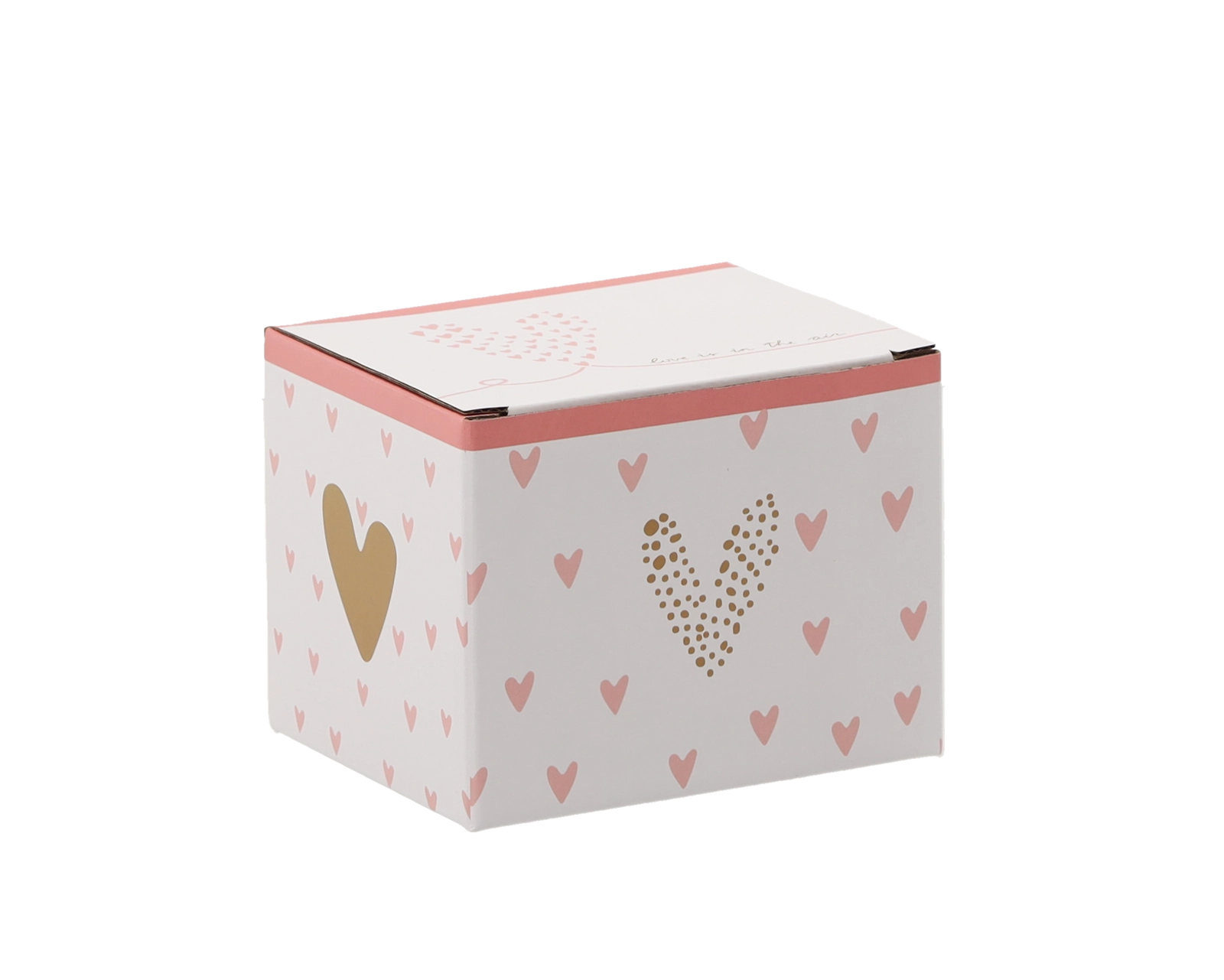 A stylish box with pink and gold hearts makes this mug an ideal gift for any occasion.