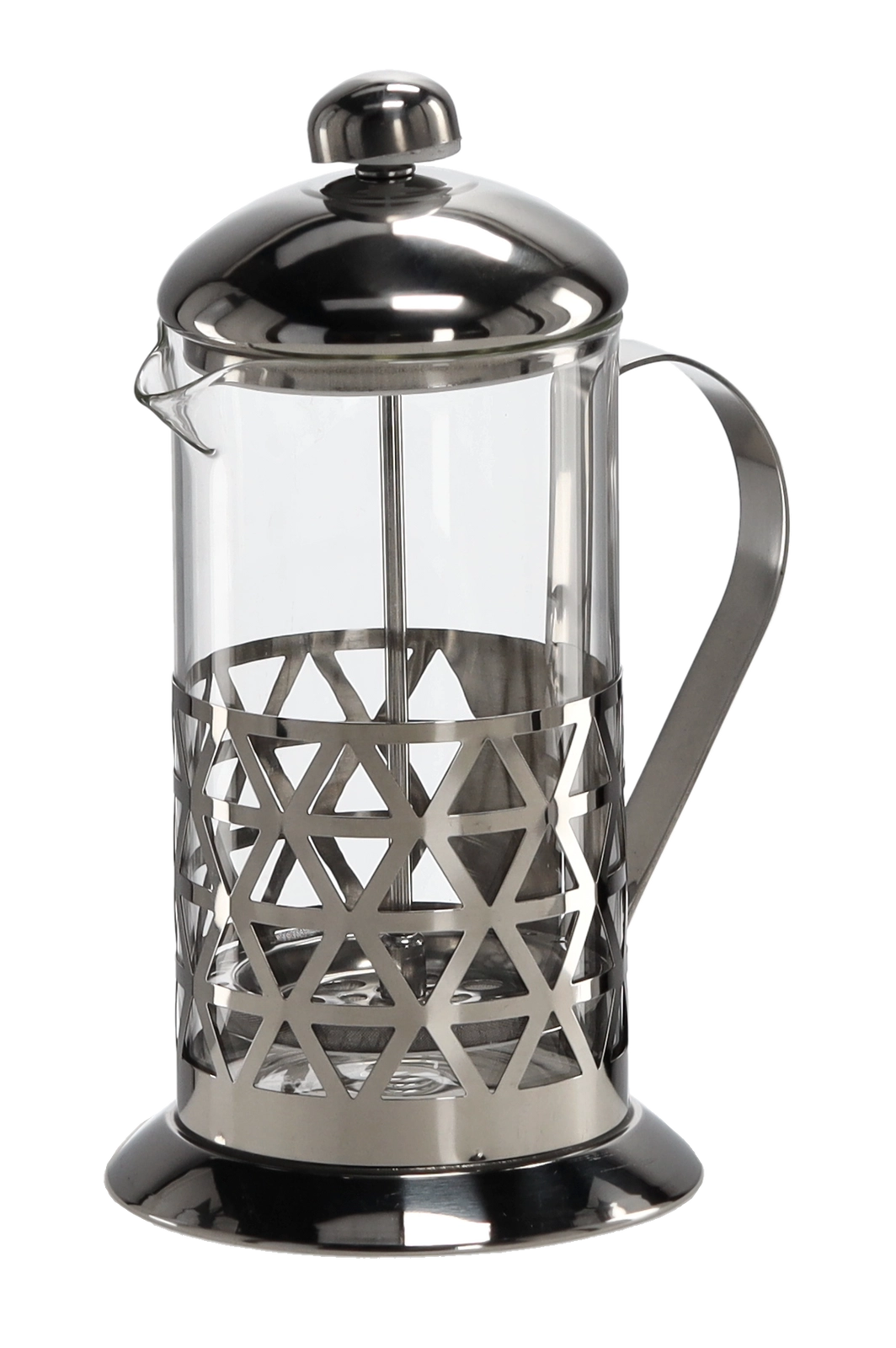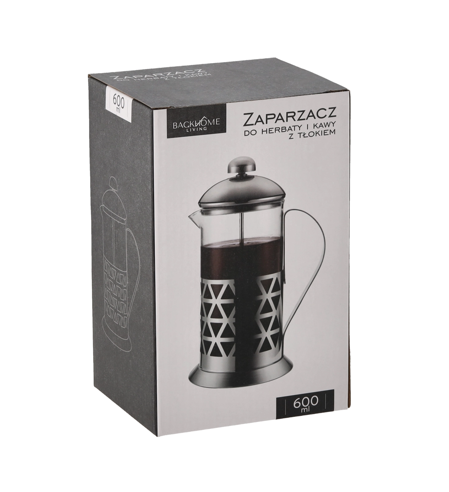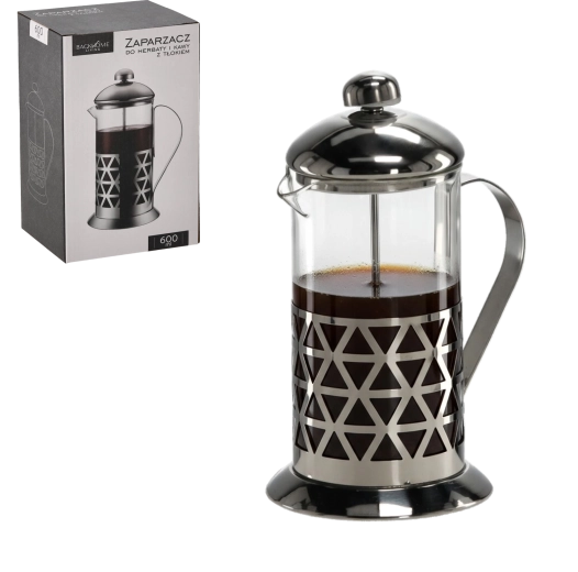 Elegant 600 ml French press for preparing coffee, tea, and herbal infusions. The combination of durable borosilicate glass and stainless steel ensures long life and a pure taste. Thanks to the ergonomic handle, practical pour spout, and fast plunger mechanism, you can make your drink without spills or waiting. Also great for frothing milk and preparing iced coffee with foam.