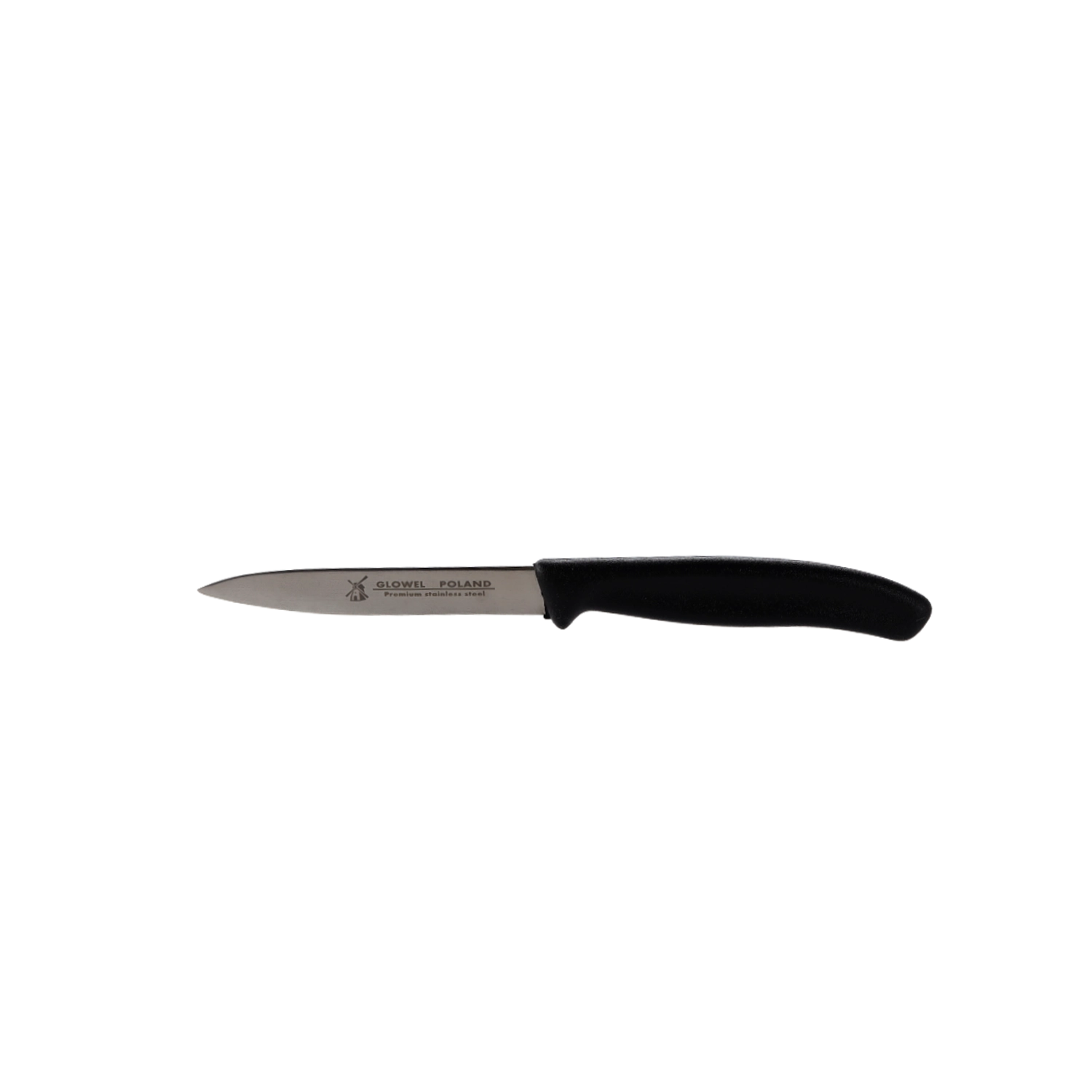 A practical kitchen knife with a 10 cm X46Cr13 stainless steel blade, ideal for peeling fruit and vegetables and slicing small foods. It offers high corrosion resistance, long-lasting sharpness, and an ergonomic polypropylene handle for a comfortable and safe grip.