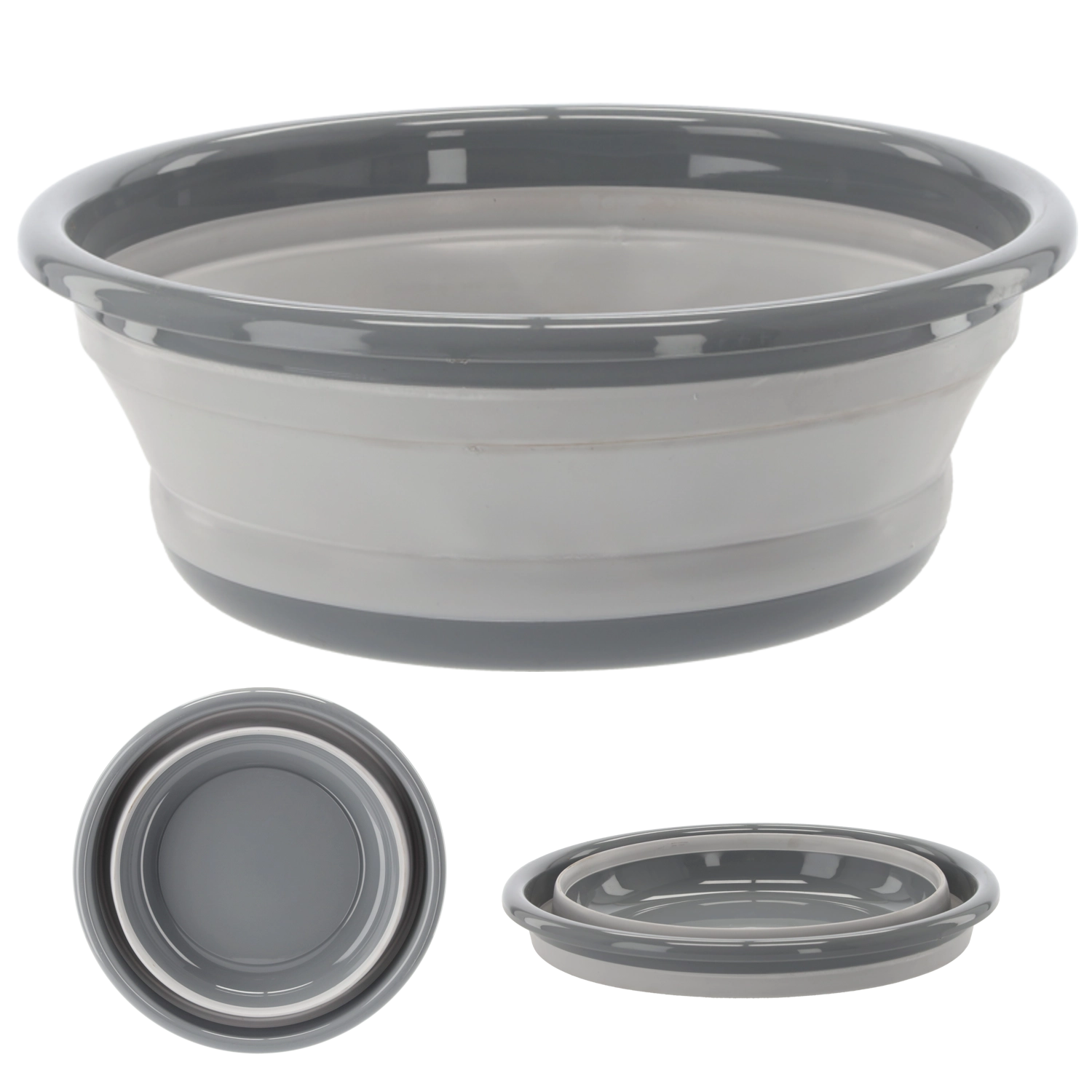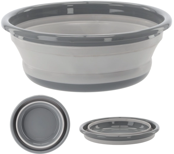 Collapsible basin 9 L made of plastic and silicone, grey-white