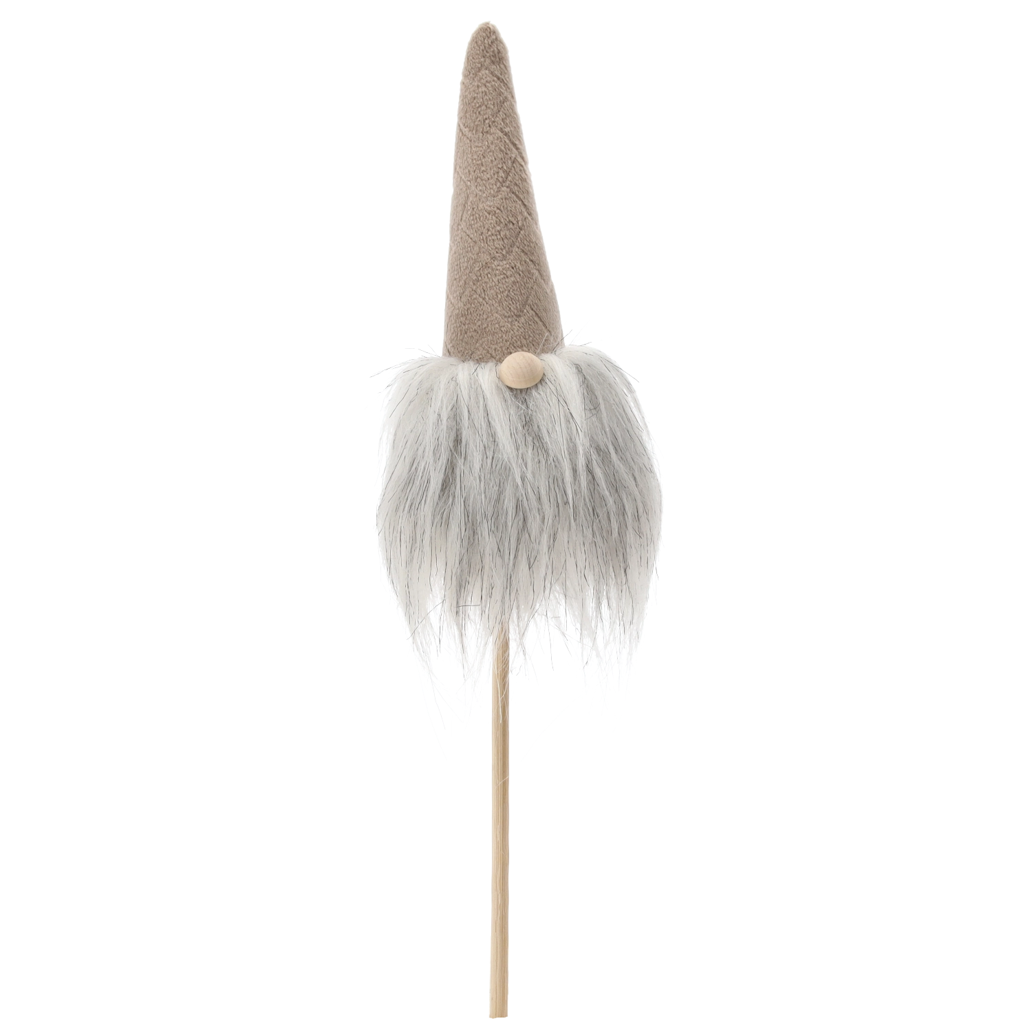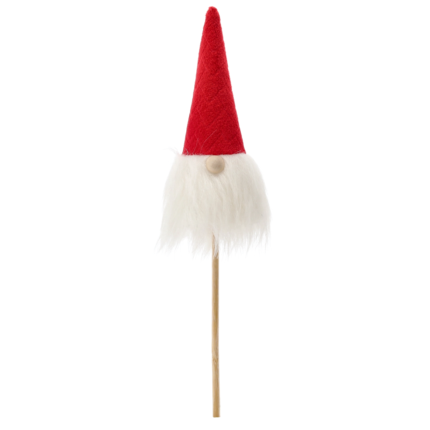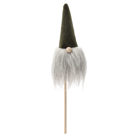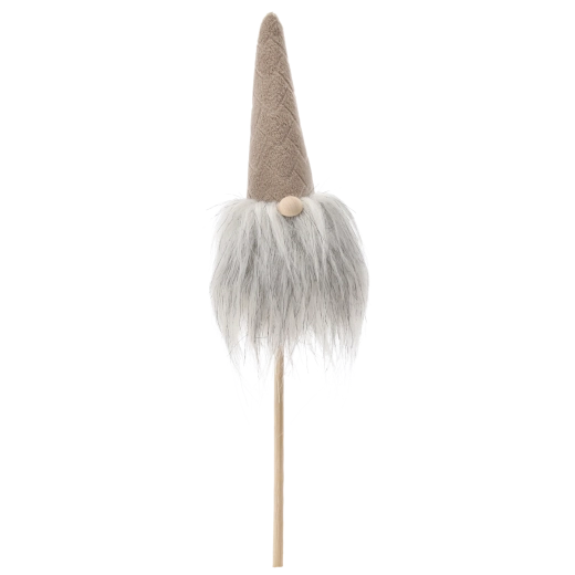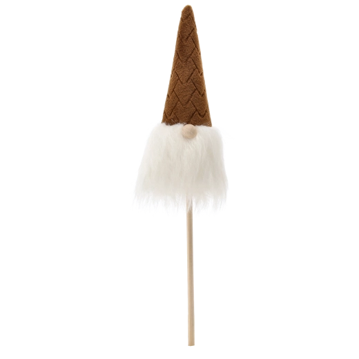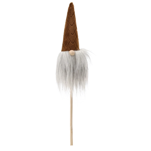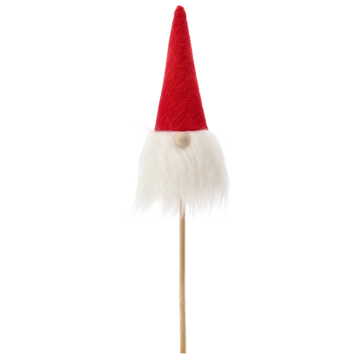 This Christmas gnome is a great choice for quick, striking decor. The lightweight construction on a wooden stick allows easy insertion into flowerpots, wreaths, or arrangements, while the soft textiles and fluffy beard give the decoration a cozy, rustic look.