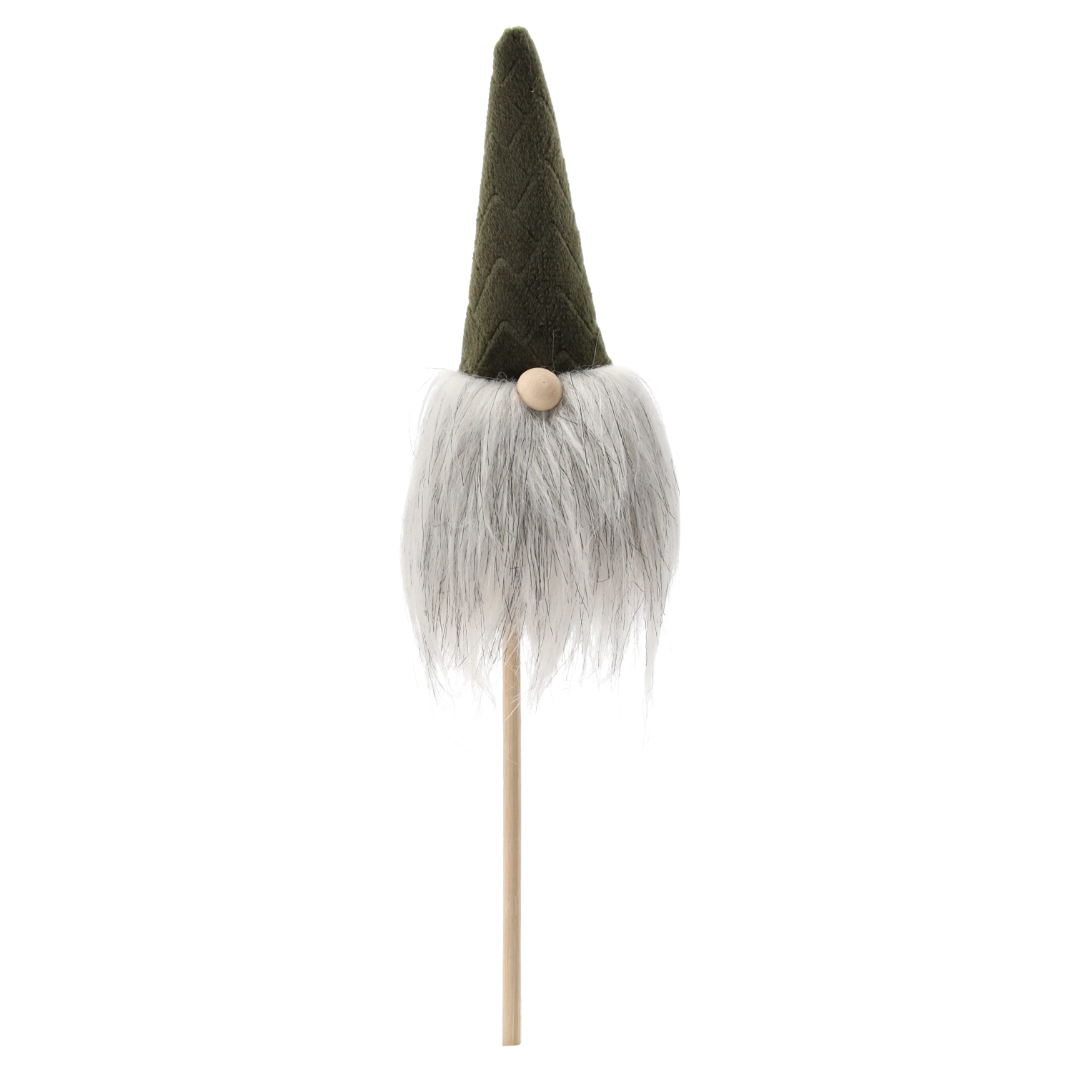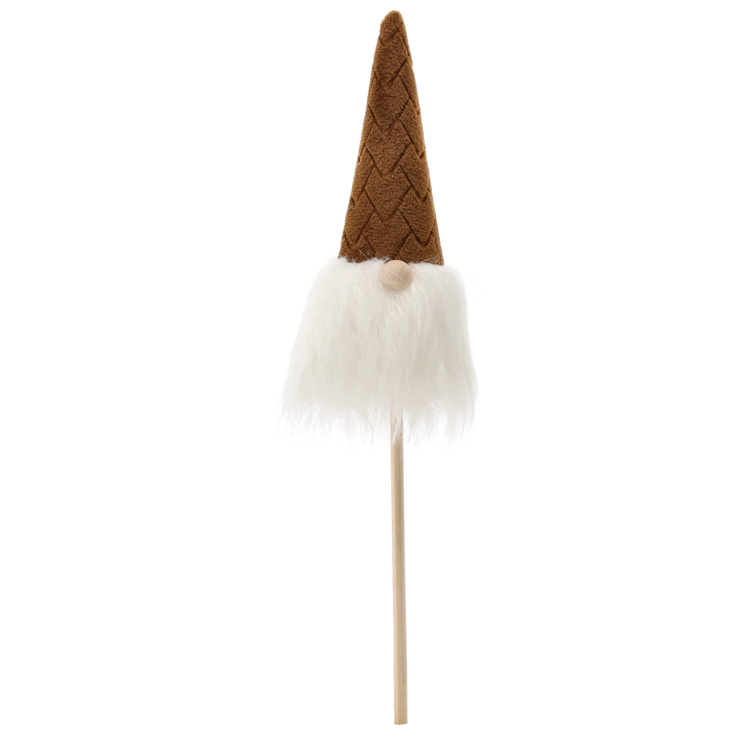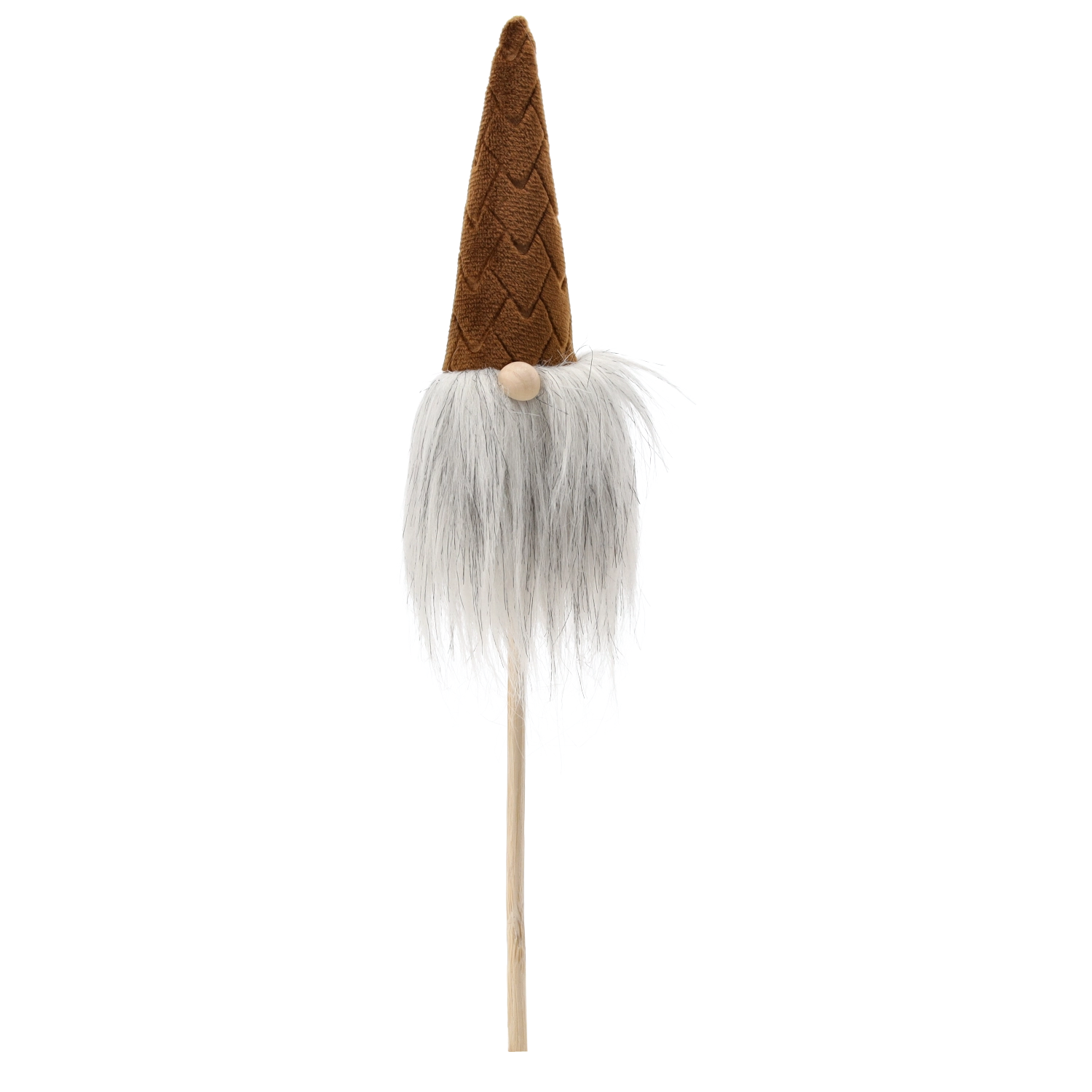 This Christmas gnome is a great choice for quick, striking decor. The lightweight construction on a wooden stick allows easy insertion into flowerpots, wreaths, or arrangements, while the soft textiles and fluffy beard give the decoration a cozy, rustic look.
