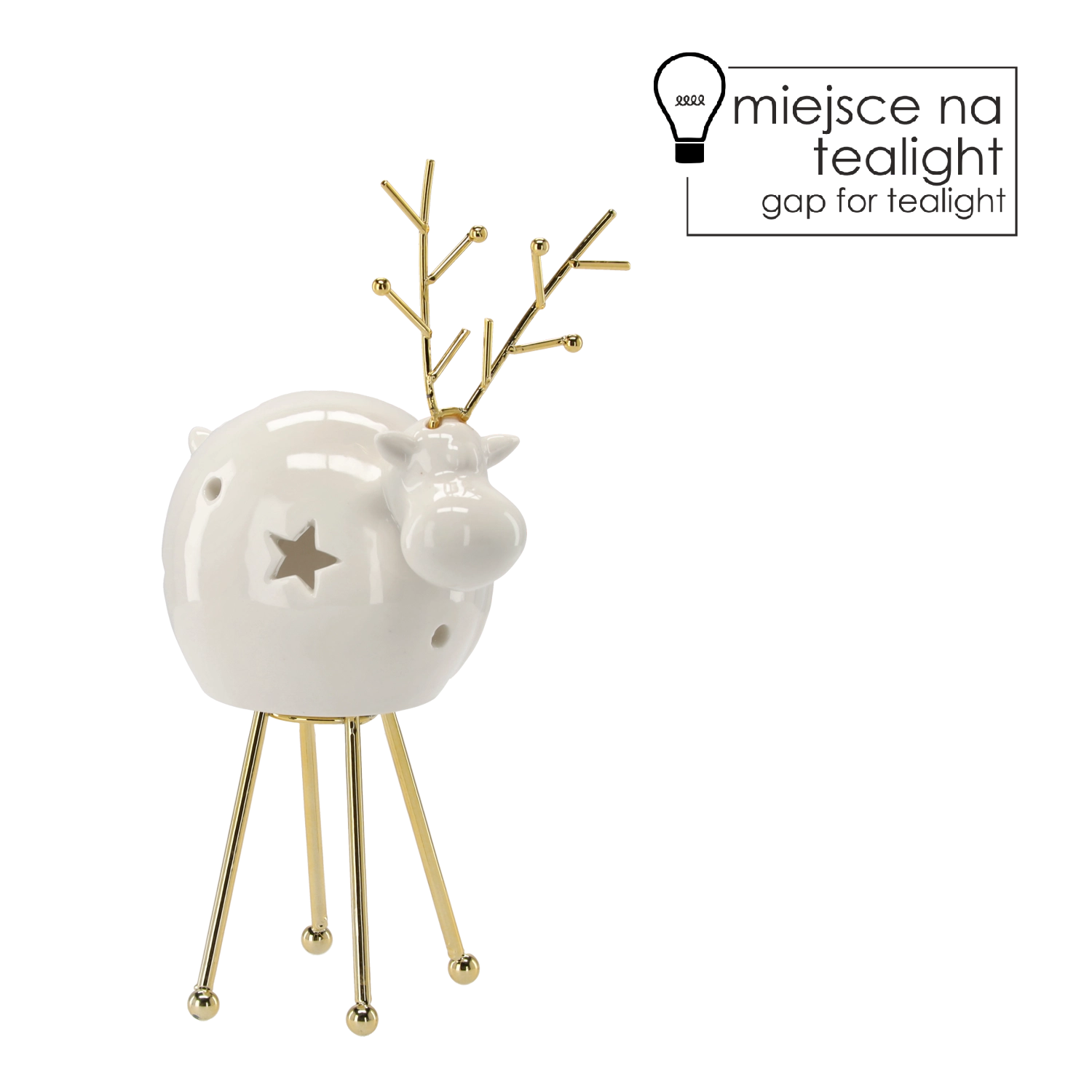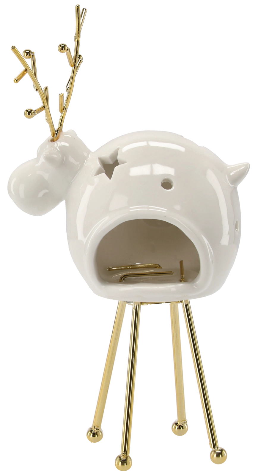 This stylish reindeer-shaped candle holder combines a traditional Christmas motif with practical functionality. The high-quality metal design with a gold finish gives the decoration a modern yet festive look that complements your seasonal styling with ease.