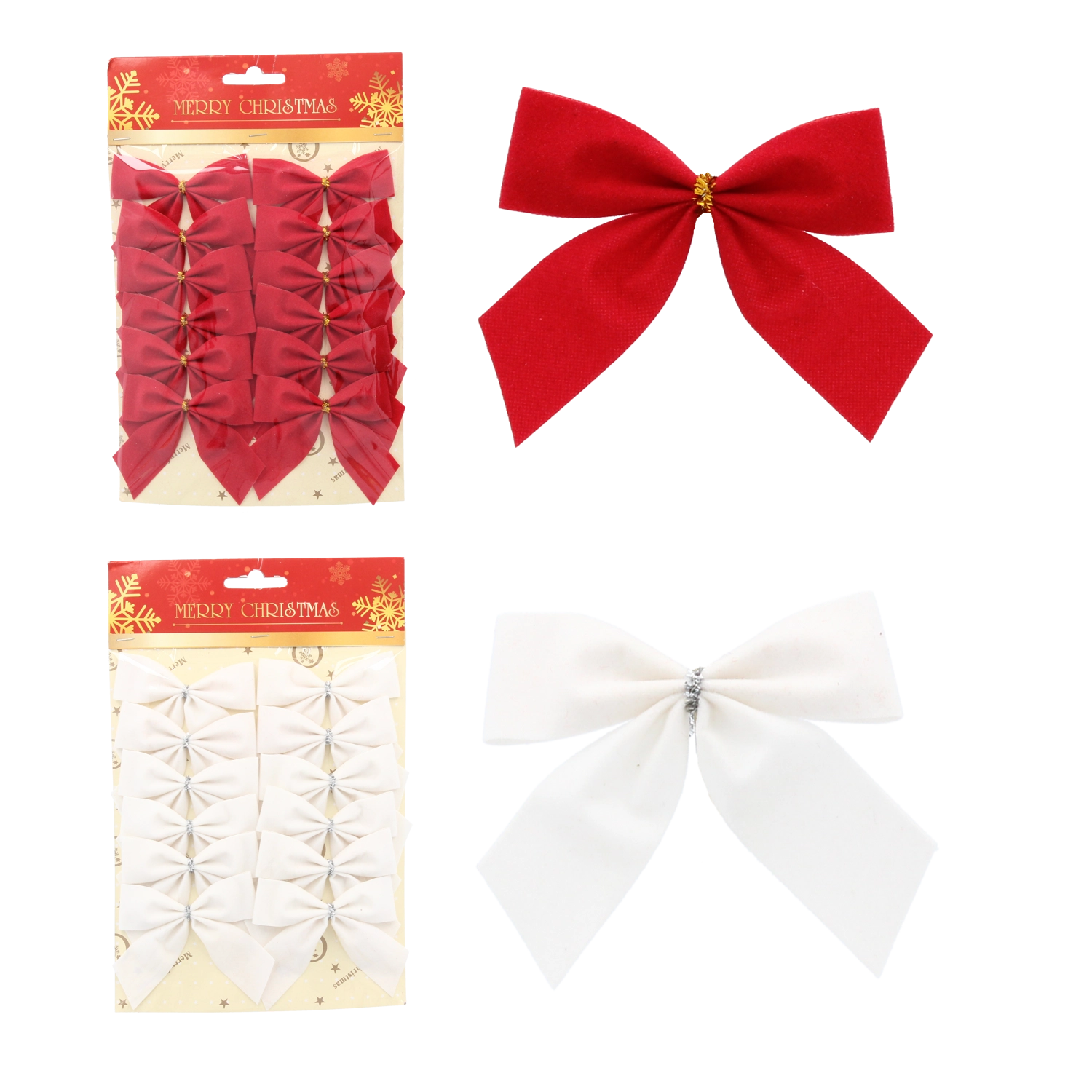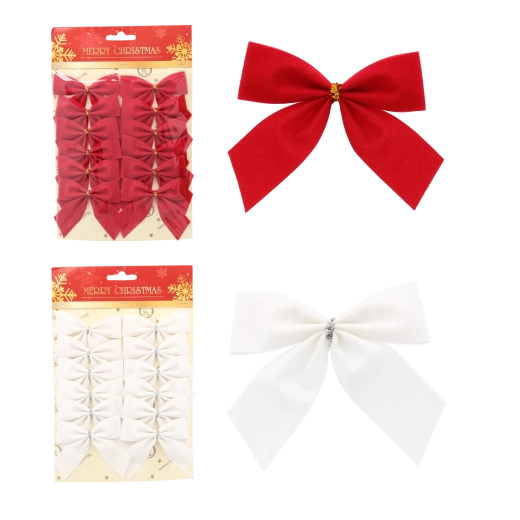 Christmas textile bows 12 pcs – red and white