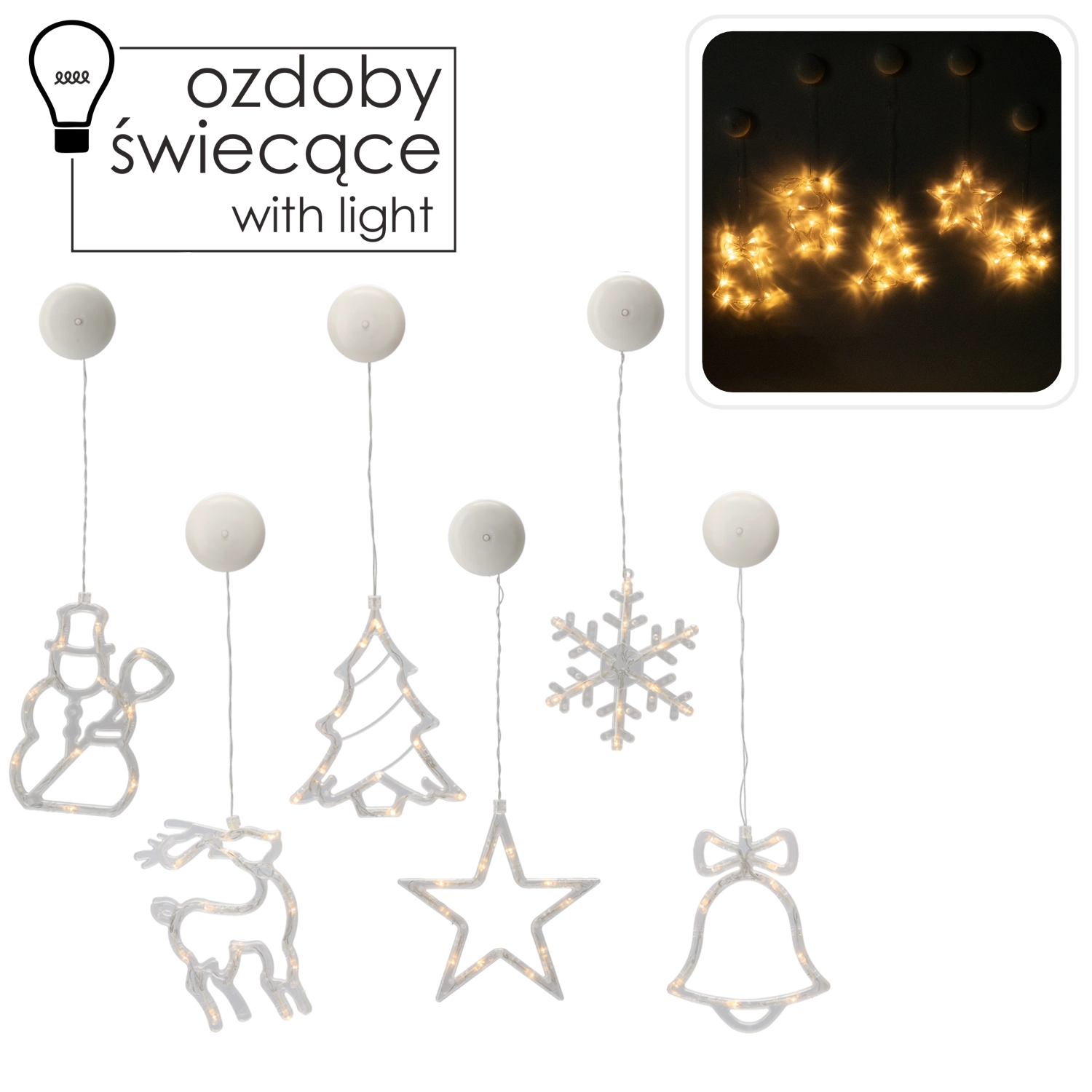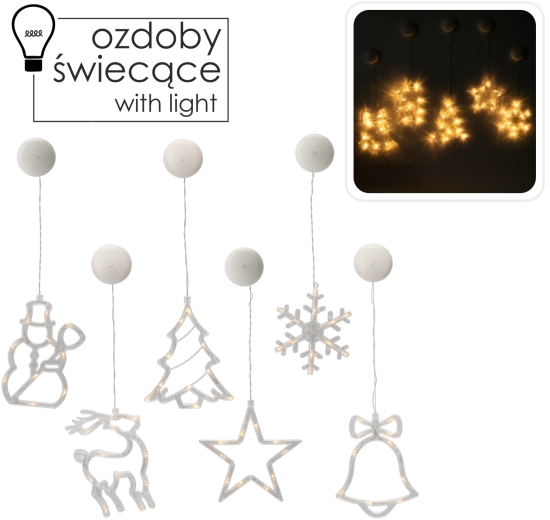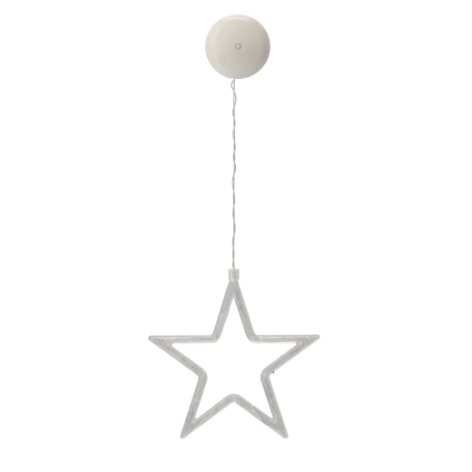 The decoration is powered by 3× AAA batteries, so you can place it exactly where you need it. The transparent cable and discreet design let the motif stand out—tree, reindeer, bell, star, snowflake, or snowman. The suction cup adheres reliably to smooth surfaces, ideally glass.