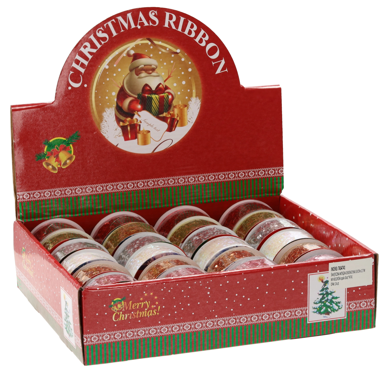 An elegant Christmas ribbon, 3.8 cm wide and 2.7 m long, adds a festive sparkle and a professional look to your decor and gifts. Thanks to the mix of colors and patterns, it’s easy to coordinate with other decorations, while quality polyester ensures strength and durability when shaping bows and arrangements.