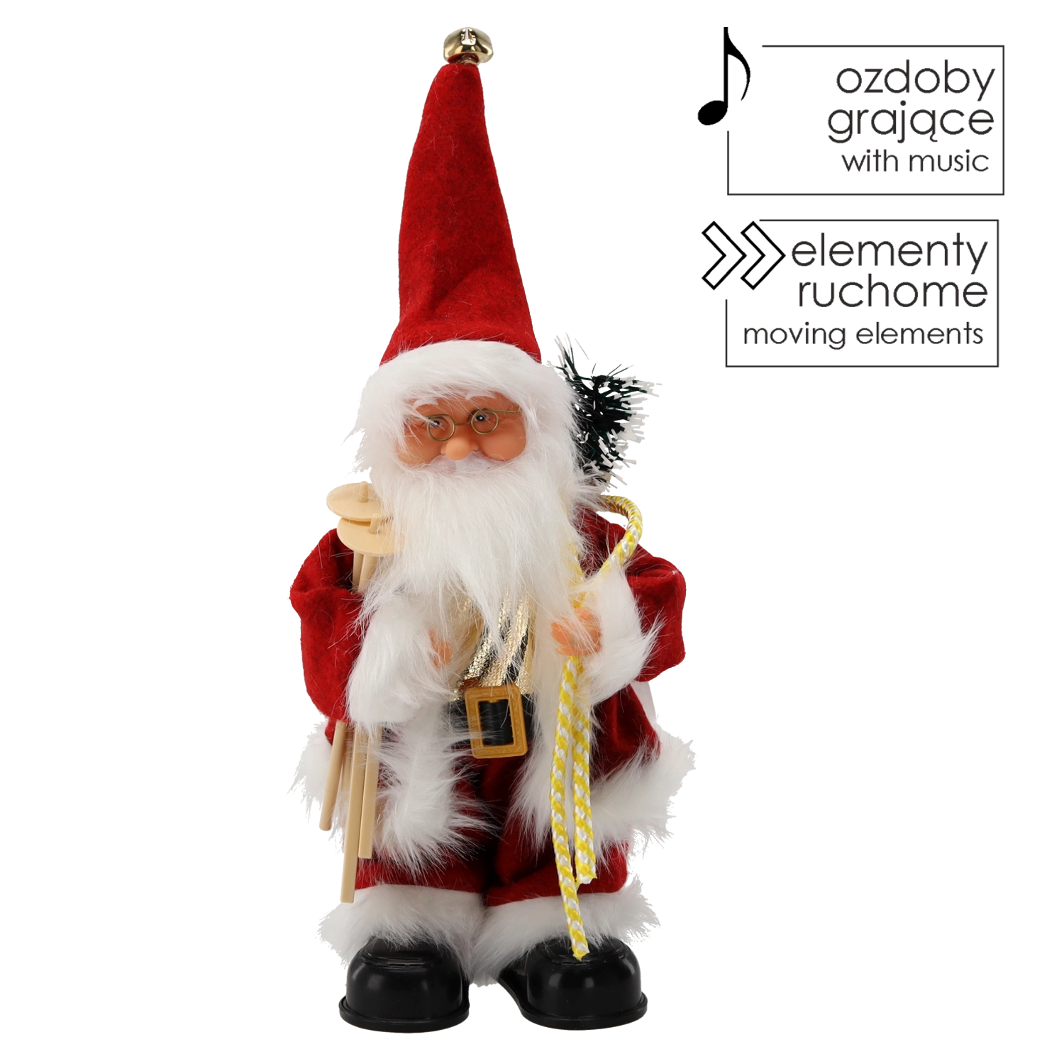 Bring winter charm and the spirit of Christmas into your home. This cute Santa with skis is a decorative figurine that plays Christmas melodies, features moving parts, and thanks to its quality craftsmanship and traditional red fur-trimmed outfit, instantly creates a festive mood.