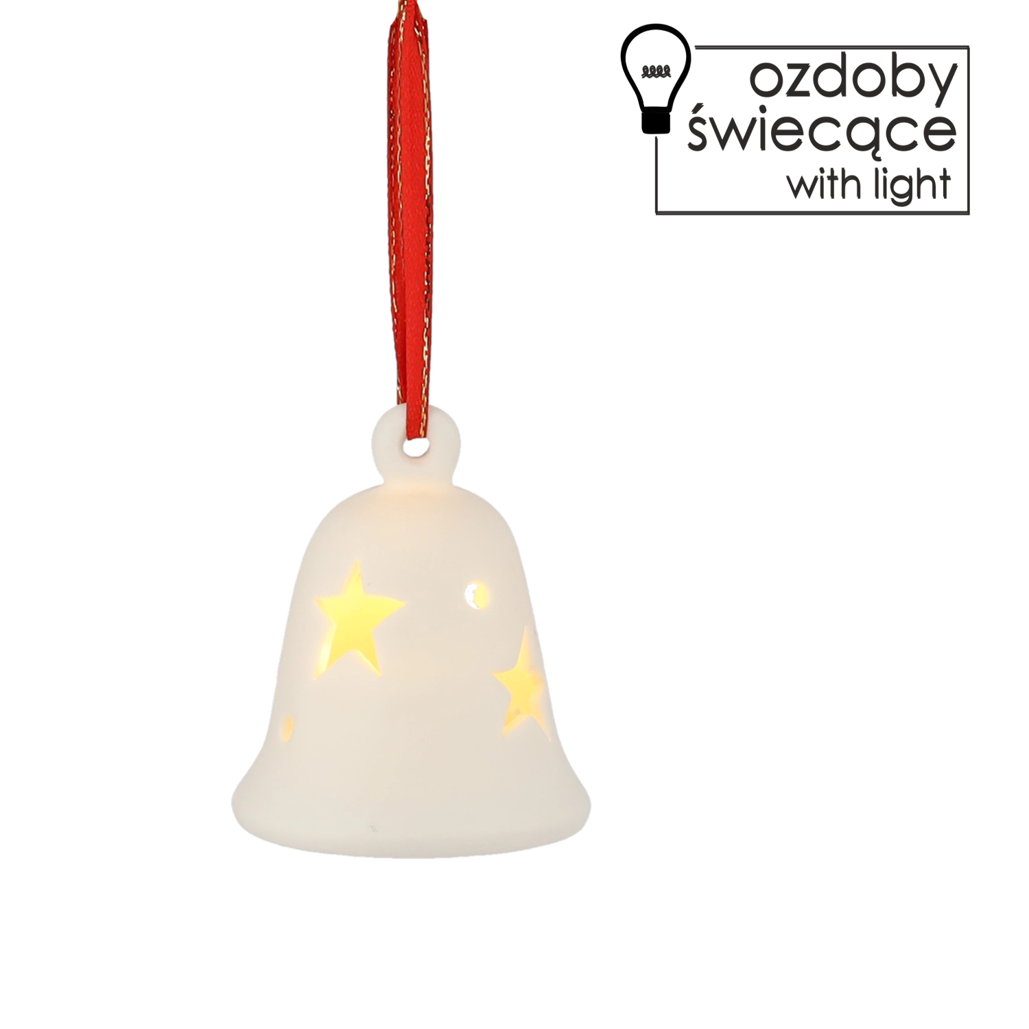 An elegant ceramic bell with LED lighting brightens your home and brings the magic of Christmas. Thanks to its white finish and soft warm glow, it creates a pleasant festive atmosphere. Its compact size makes it easy to place or hang on the tree, in a window, or on a door.