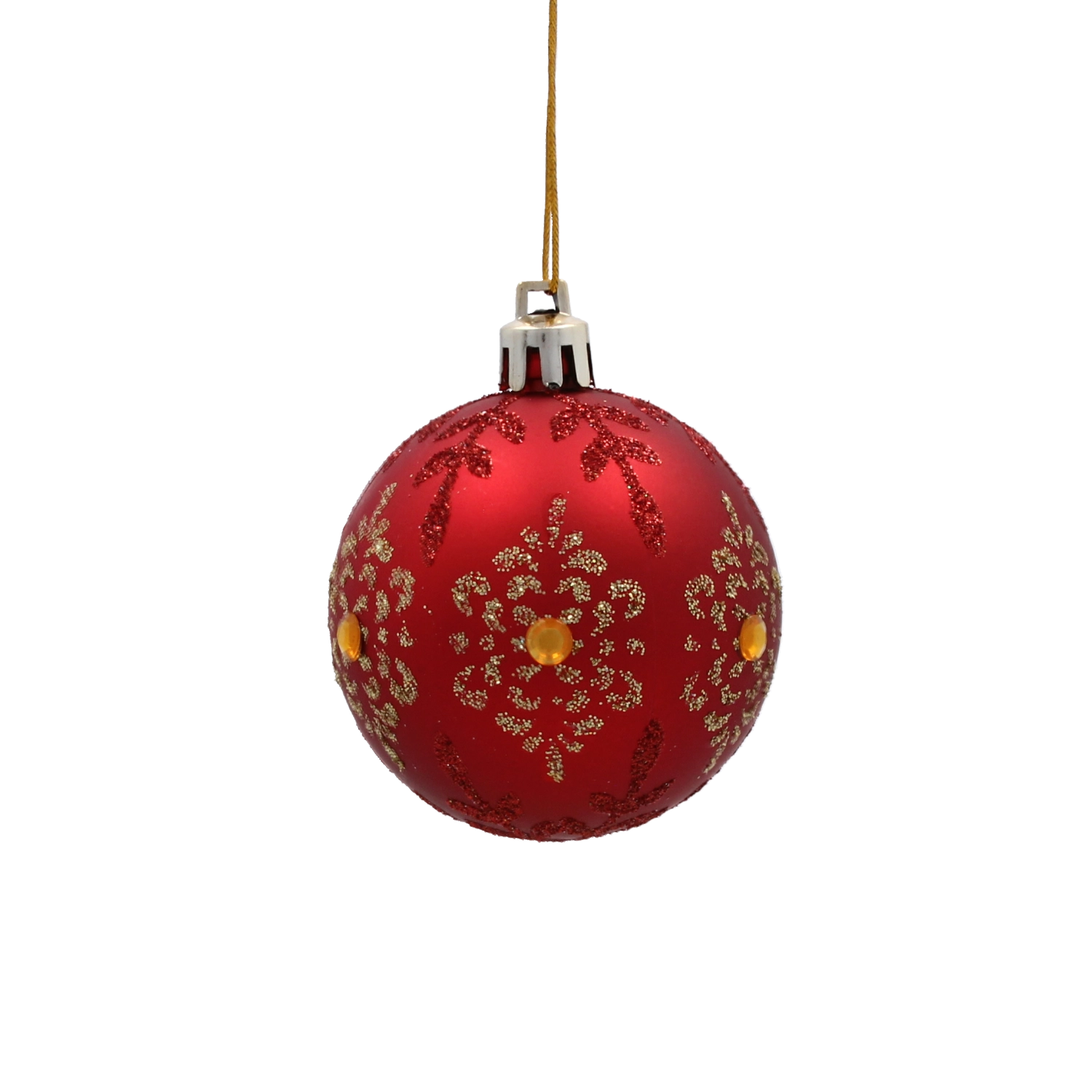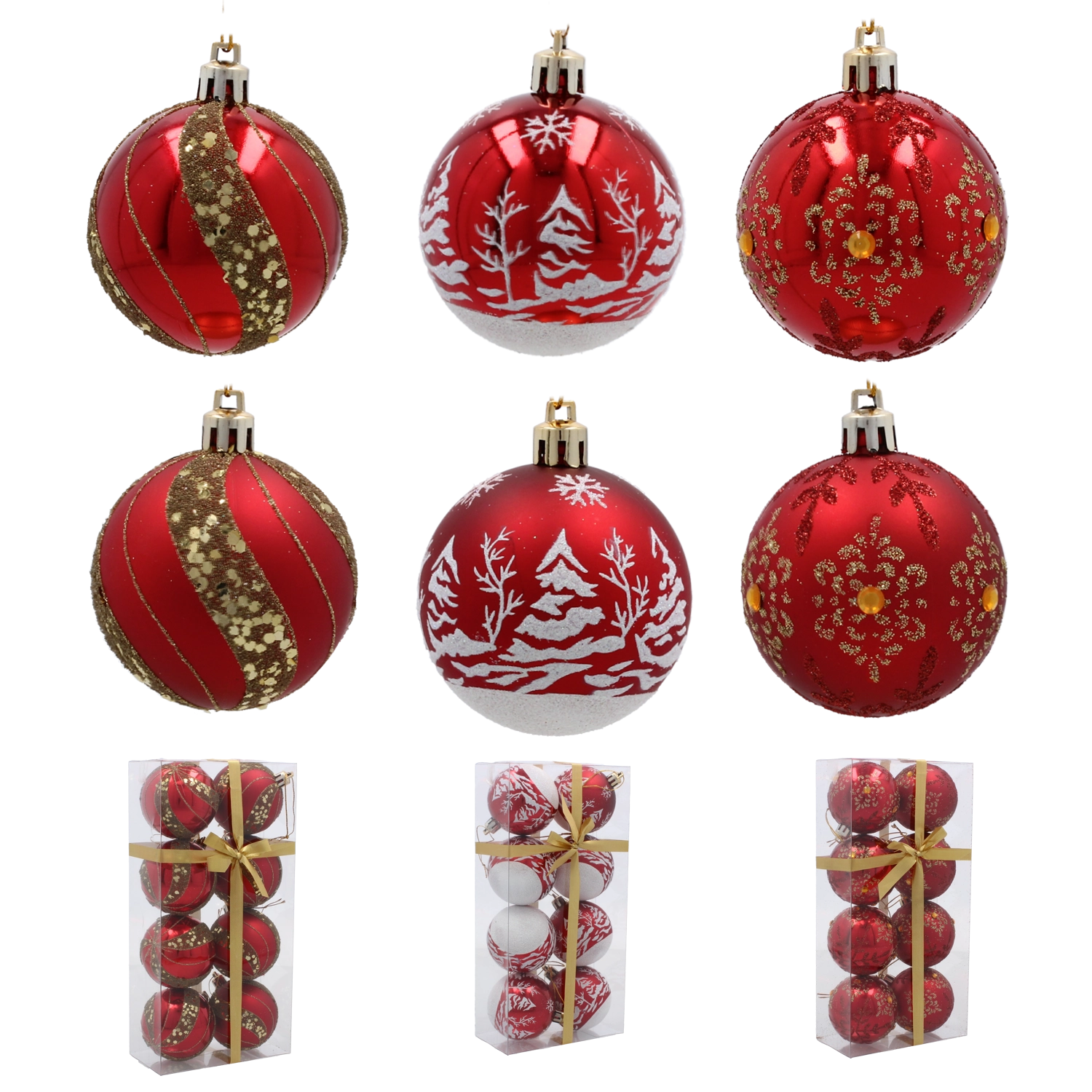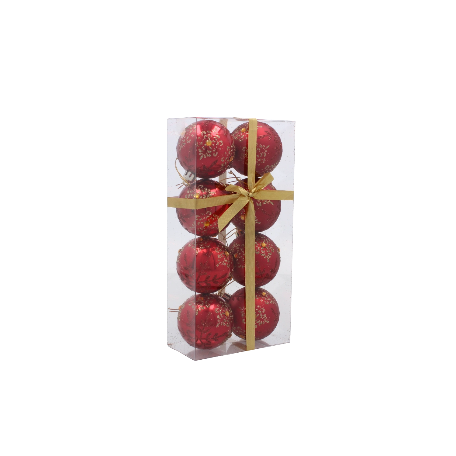 Bring Christmas magic into your home with a set of 8 red Christmas balls, 6 cm in diameter. The combination of matte and glossy finishes creates a warm glow, the variety of elegant patterns adds style to your tree, and the shatterproof material ensures safe and long-lasting use. Includes strings for easy hanging.