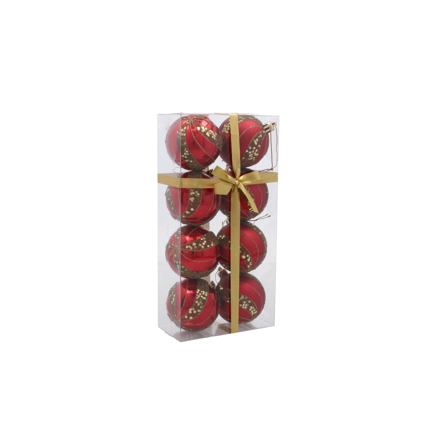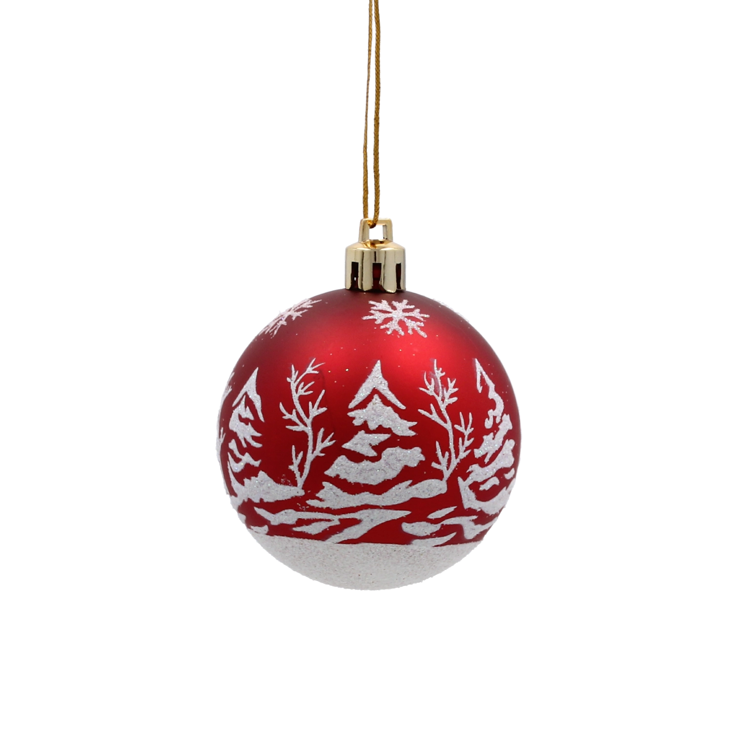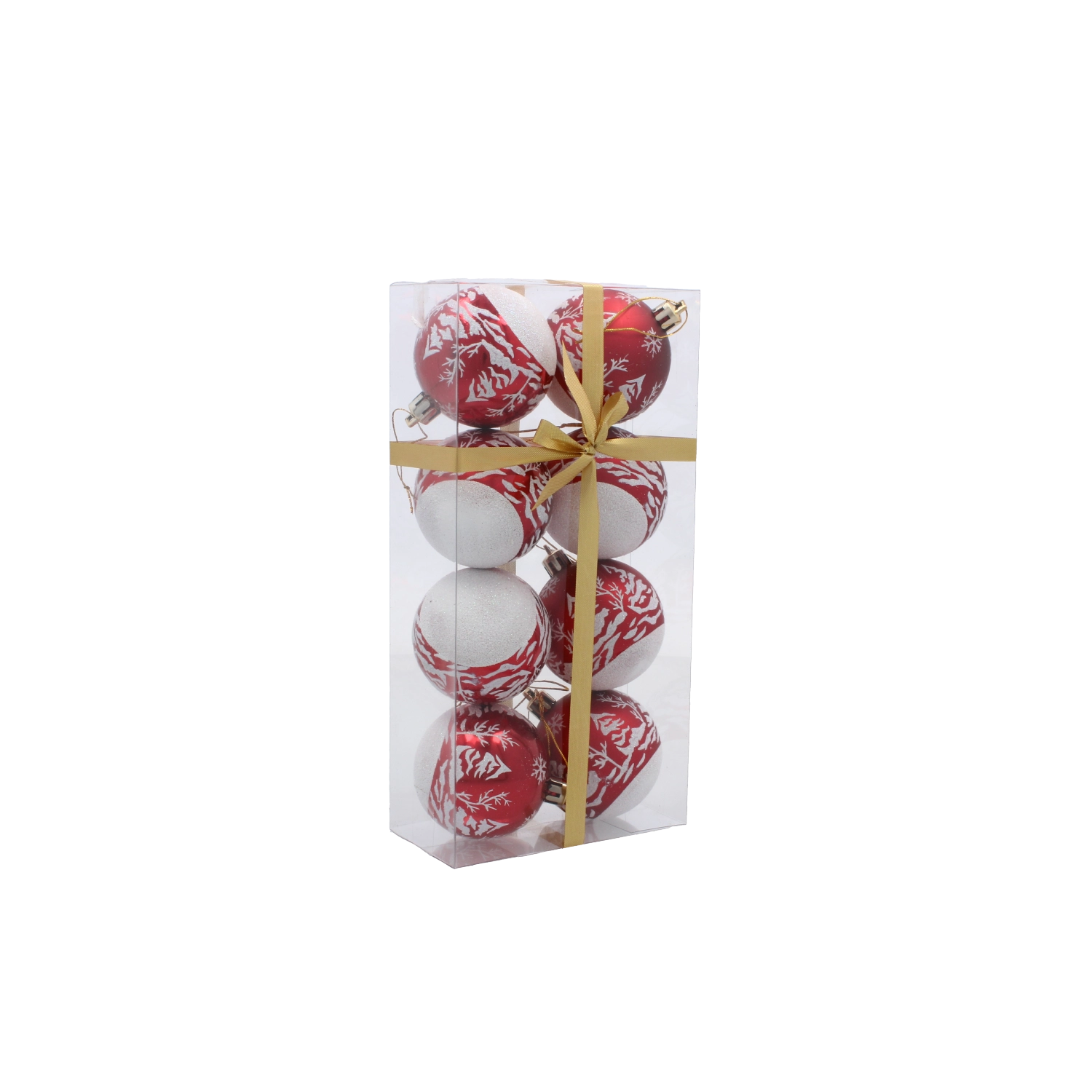 Bring Christmas magic into your home with a set of 8 red Christmas balls, 6 cm in diameter. The combination of matte and glossy finishes creates a warm glow, the variety of elegant patterns adds style to your tree, and the shatterproof material ensures safe and long-lasting use. Includes strings for easy hanging.