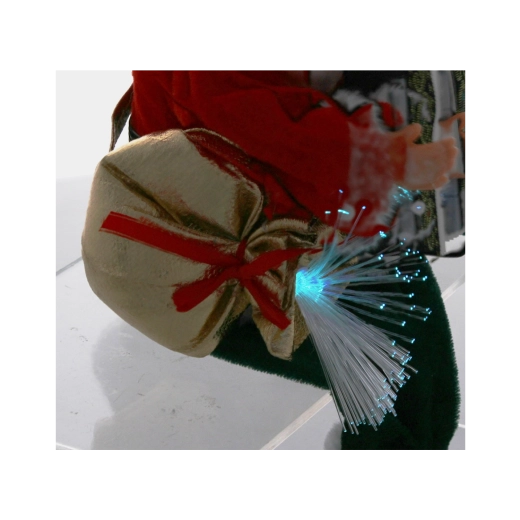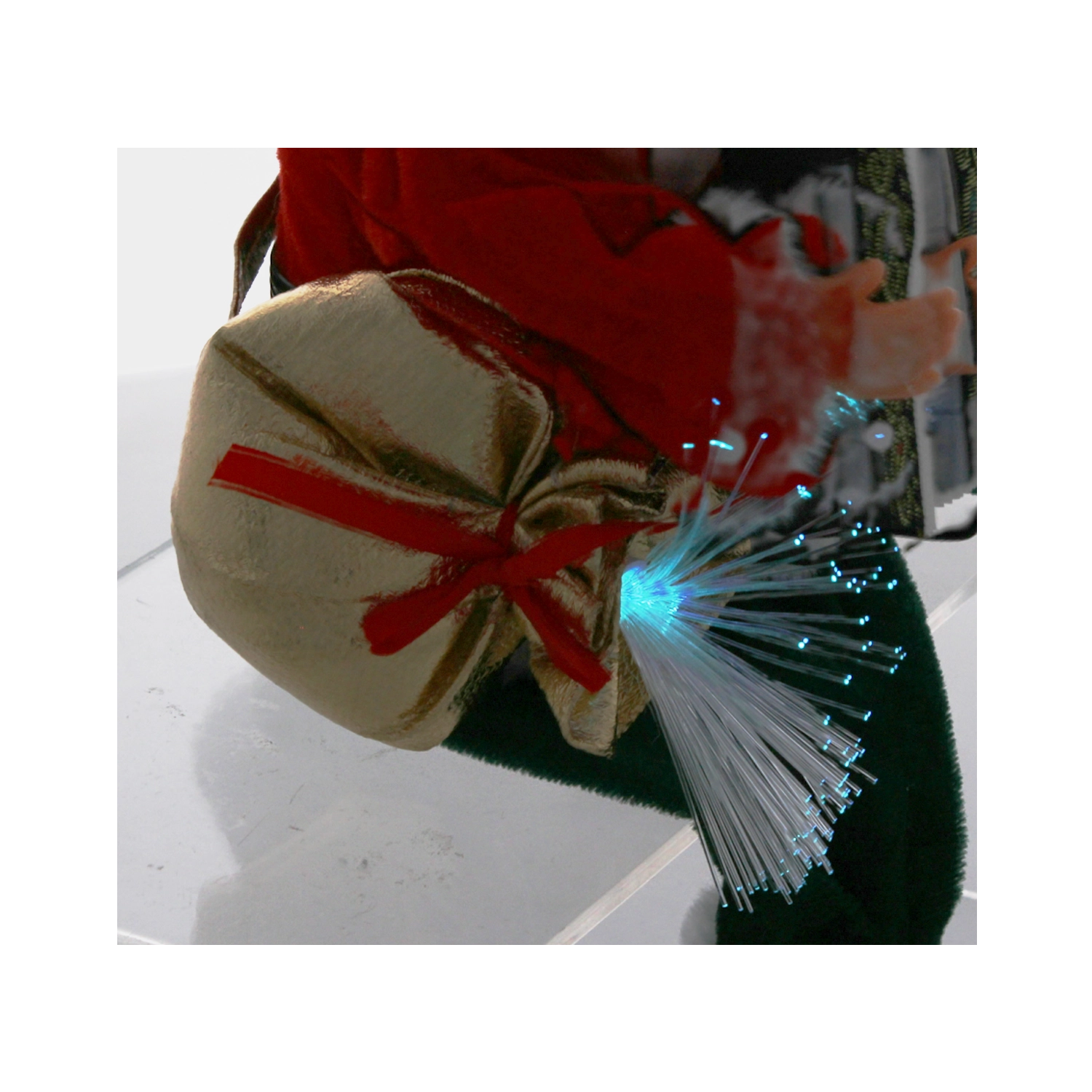 Integrated LEDs in the sack create a warm glow that enhances the festive atmosphere.