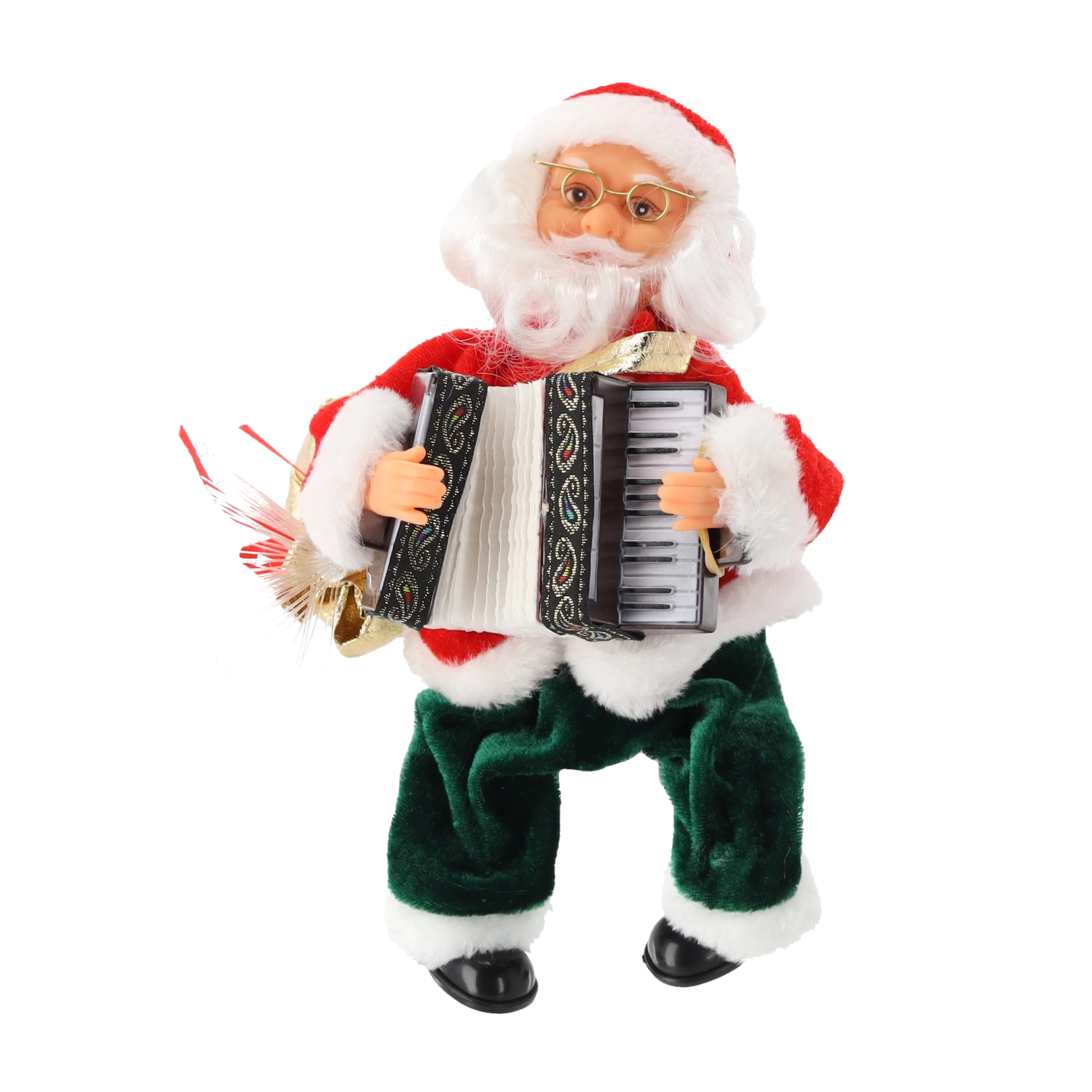 Santa plays joyful tunes and moves his hands and accordion in sync for a lively effect.