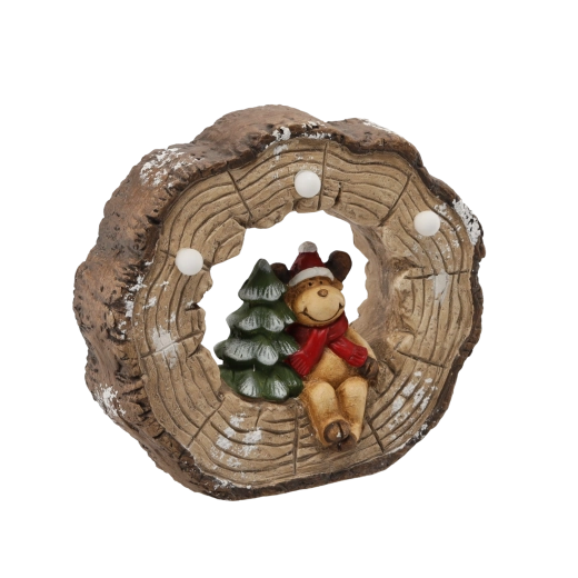 This Christmas figurine with a reindeer nestled inside a hollow tree stump brings warm light accents to any interior. The integrated LED light gently illuminates the details and creates a pleasant festive charm without overheating and with low energy consumption.