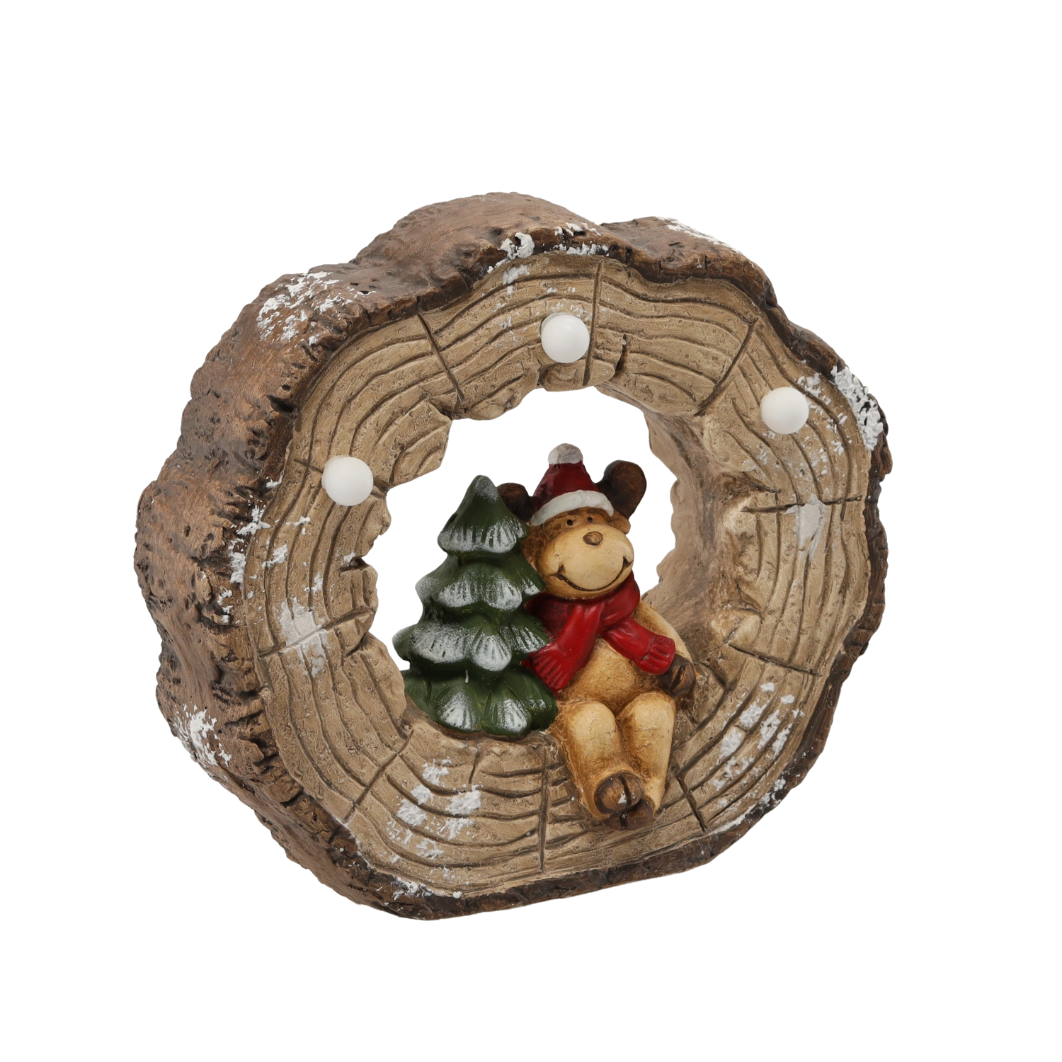 Create a magical atmosphere at home with this striking Christmas decoration – a reindeer figurine in a tree stump with LED lighting. The elegant design made of durable magnesia and compact dimensions are perfect for a shelf, sideboard, or festive table. Powered by 2× AAA batteries (not included) for easy, cord-free placement.