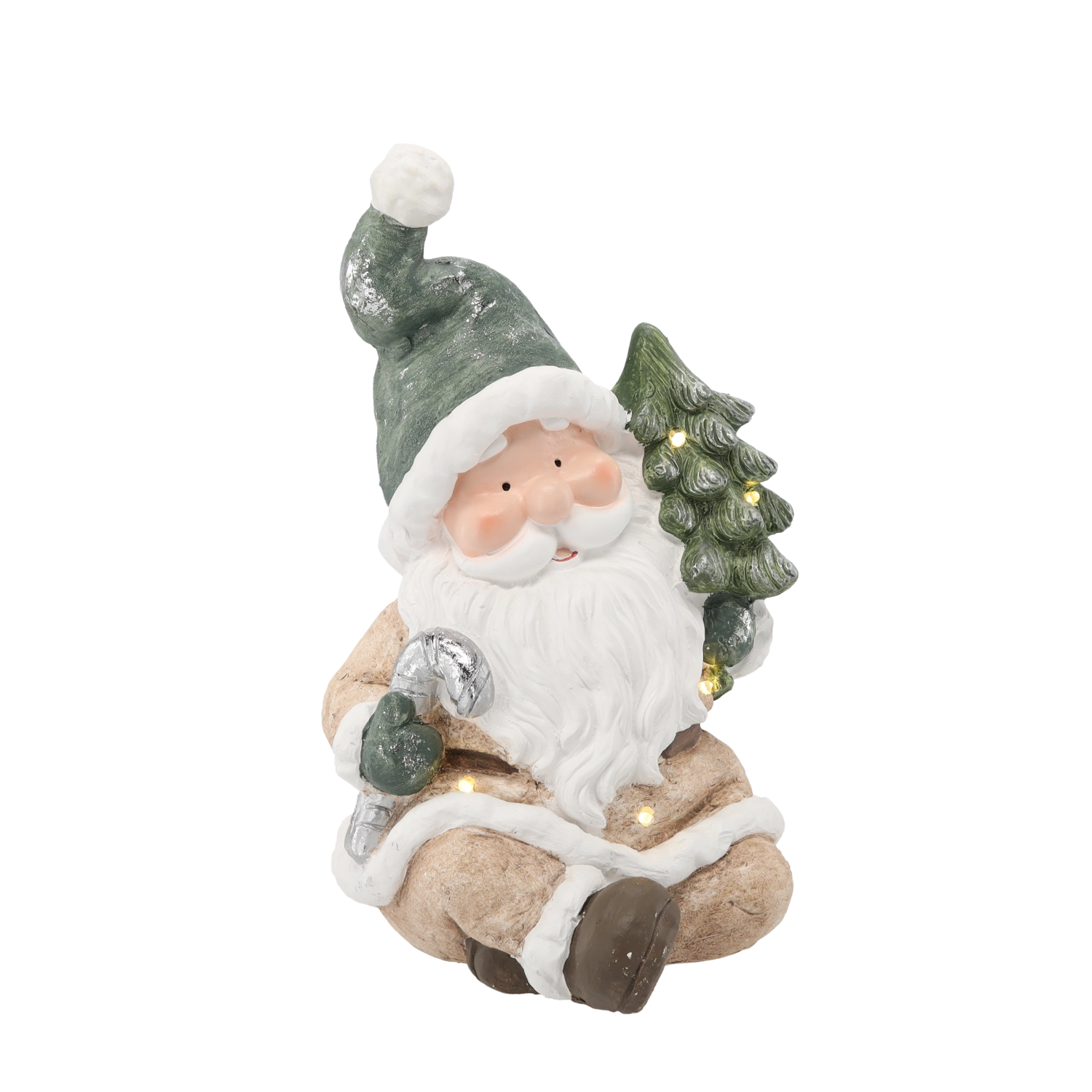 Brighten your home with a festive atmosphere using this elegant SANTA Christmas figurine with a tree. The integrated LED lighting creates a warm glow that highlights the decoration’s details. Thanks to its compact dimensions, it’s ideal for a sideboard, windowsill, or under the tree. Powered by 3× AAA batteries (not included), it’s easy to place anywhere without cables, and the magnesite ceramic material adds a premium look.